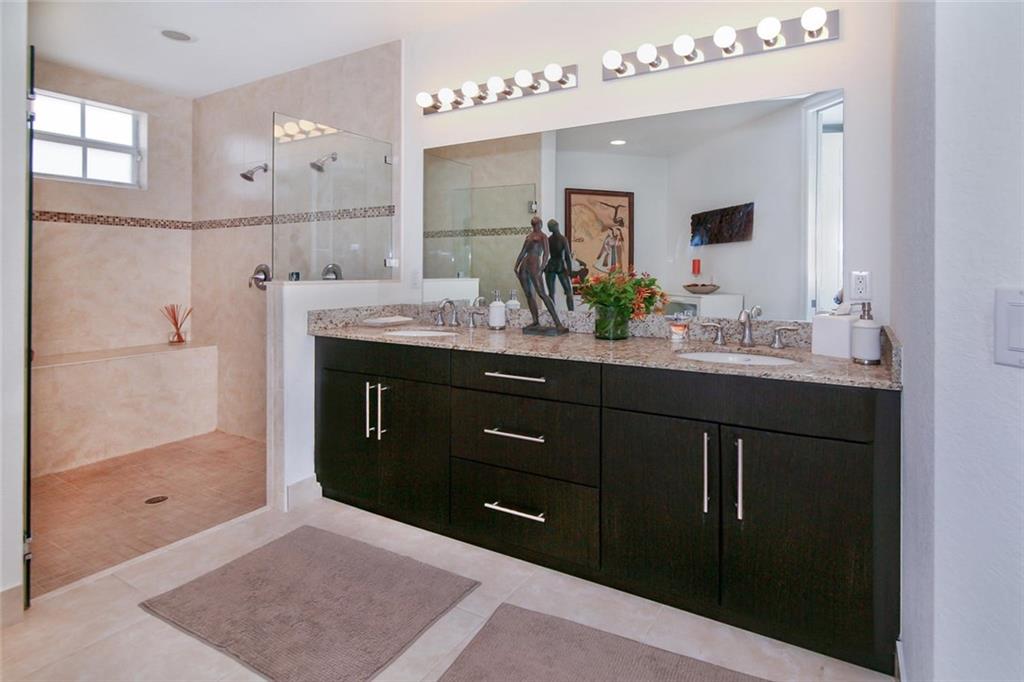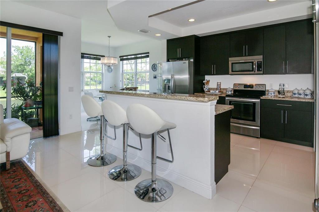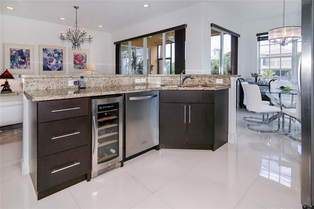 CONTEMPORAY 3 BED 2 BATH 1 CAR GARAGE CORNER UNIT WITH LAKE VIEW. 22X22 PORCELAIN FLOORS IN ALL LIVING AREAS, WOOD FLOORS IN ALL BEDROOMS. CONTEMPORARY NEW 42" ESPRESSO KITCHEN CABINETS, STAINLESS STEEL APPLAINCES INCLUDING WINE CHILLER, GRANITE COUNTER T OPS, MASTER BATH WITH DUAL VANITES WITH MARBLE COUTER TOPS, 2 SHOWER HEADS IN MASTER SHOWER, SCREENED IN PATIO.