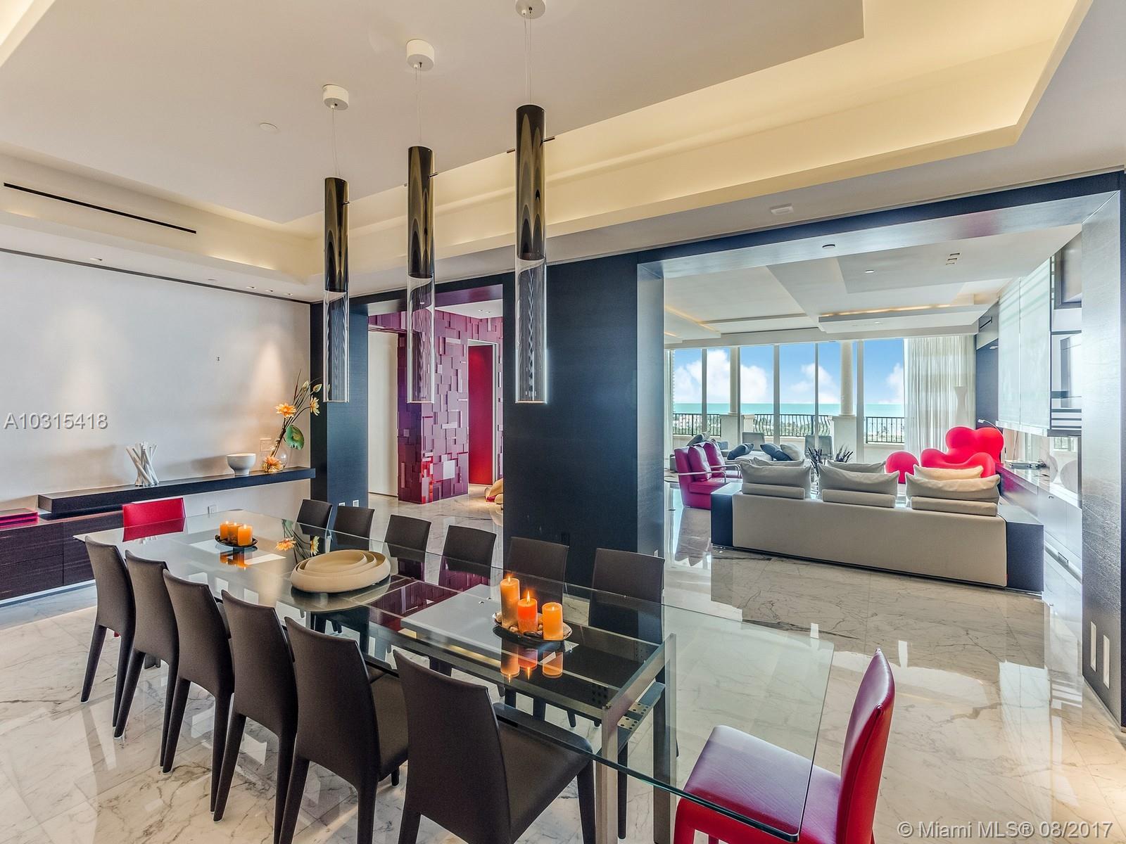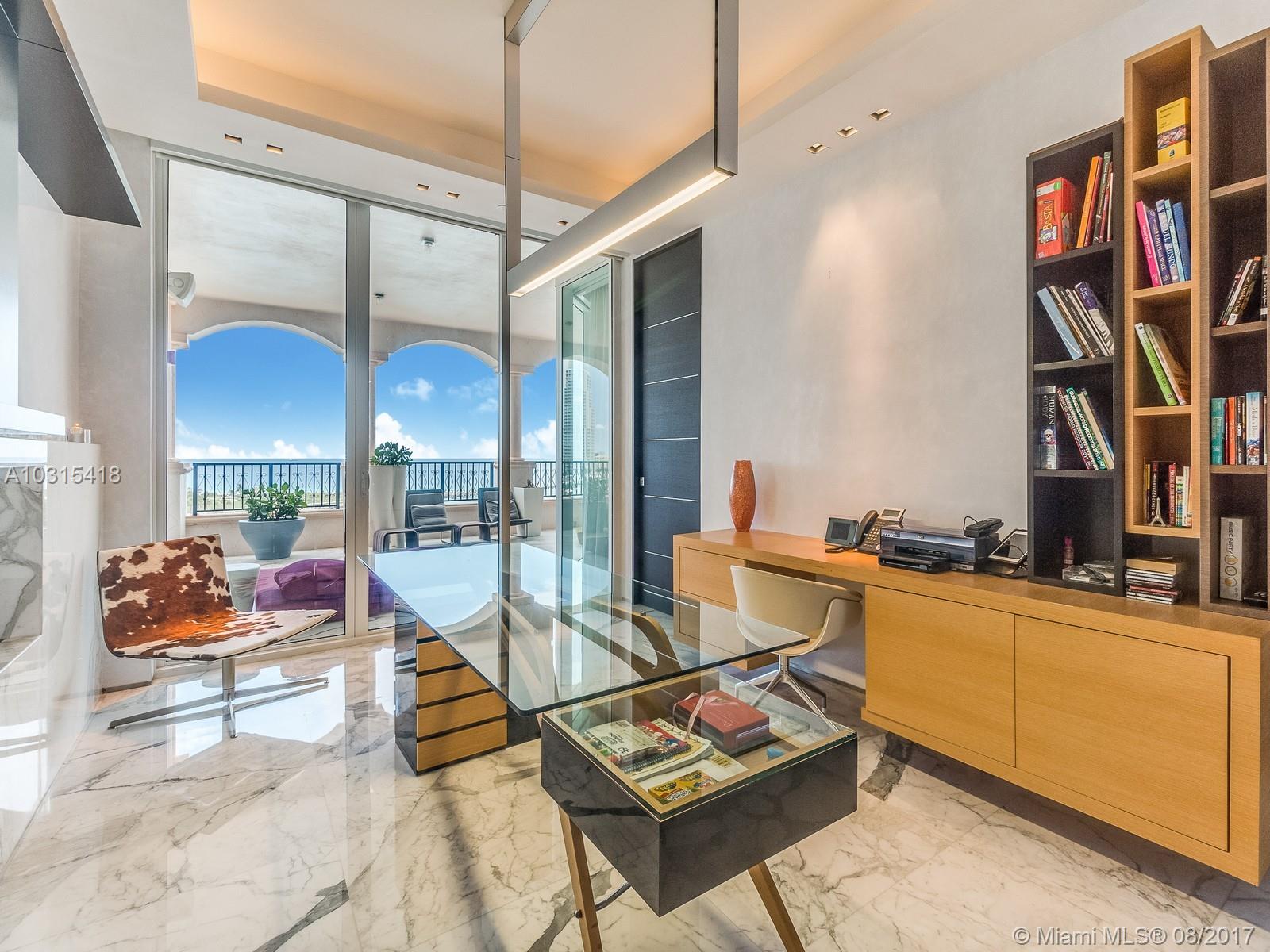 The ONE unit that has it all. Contemporary custom designed lower PH in Palazzo Del Mare by renowned designer Pepe Calderin boasts dramatic double door foyer, water fall entry feature & top of the line finishes throughout. Offered fully furnished “As Is” w/ rich Italian leather modern décor & wood/glass tables. Rare six (6) BR sprawling unit claims sweeping unobstructed views of Gov’t Cut, South Beach & the Atlantic Ocean from the moment one enters, this property is ideal for family living & entertaining. The sophisticated Master Spa Bath offers the ultimate luxurious experience w/ its oversized infinity whirlpool tub as the focal point & separate glass shower w/ deep ocean-blue glass tiles. Modern gourmet Kitchen w/ Miele appliances is wrapped in ‘’Calacatta’’ marble.