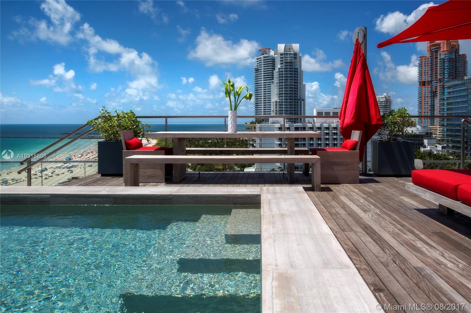 The only full floor oceanfront penthouse in South Beach. This 13,220 sf 2 story Penthouse has it all: nearly 7,000 sf of interior space, a private 5,223 sf roof deck w/ 36 ft infinity pool, outdoor kitchen, fire pit, and massive entertaining space. It offers and abundance of light and space, and has a plethora of luxury specifications. 360 ocean & city views enjoyed from a comfortable height 100 ft above the beach.