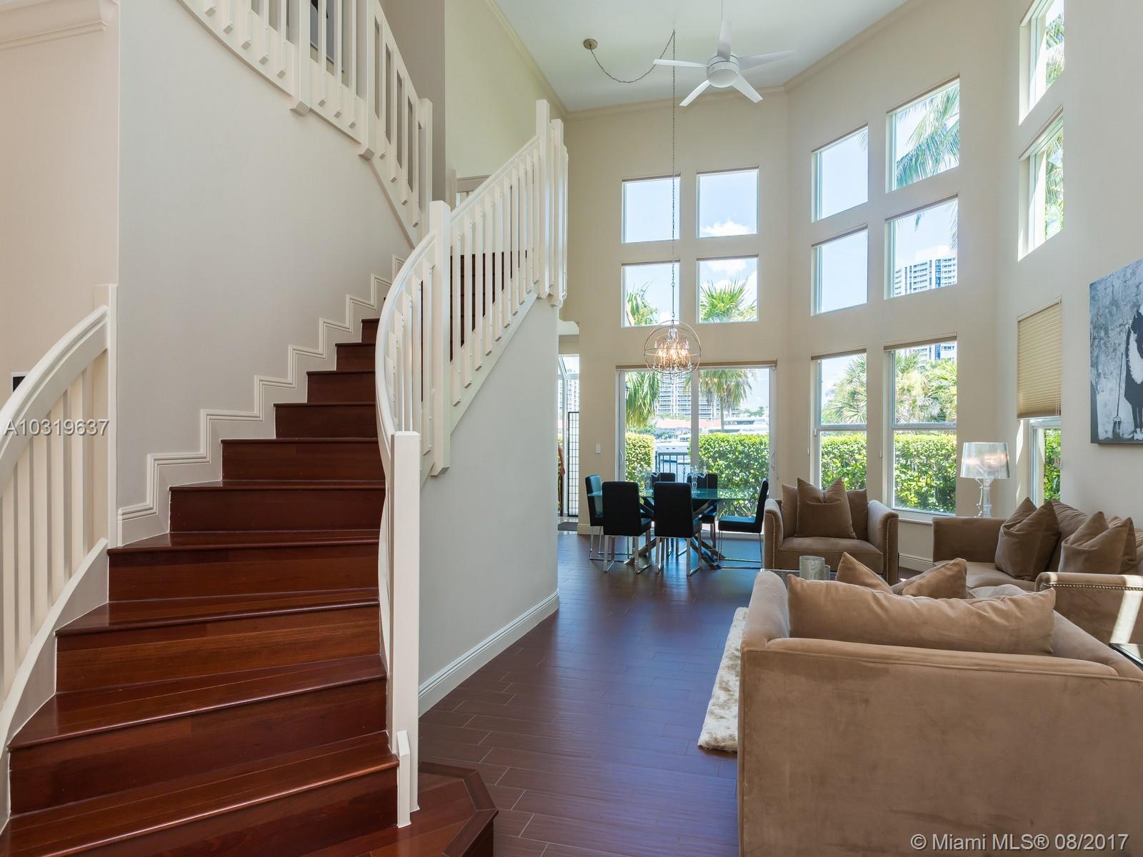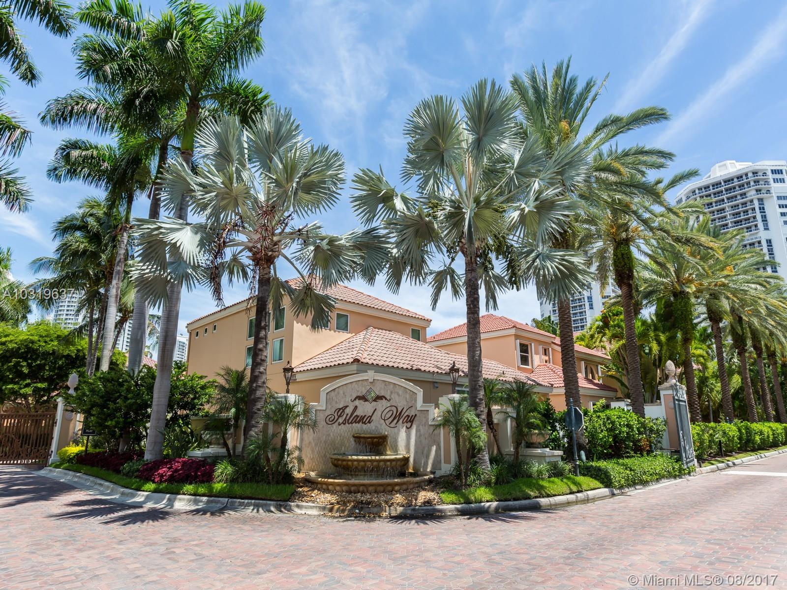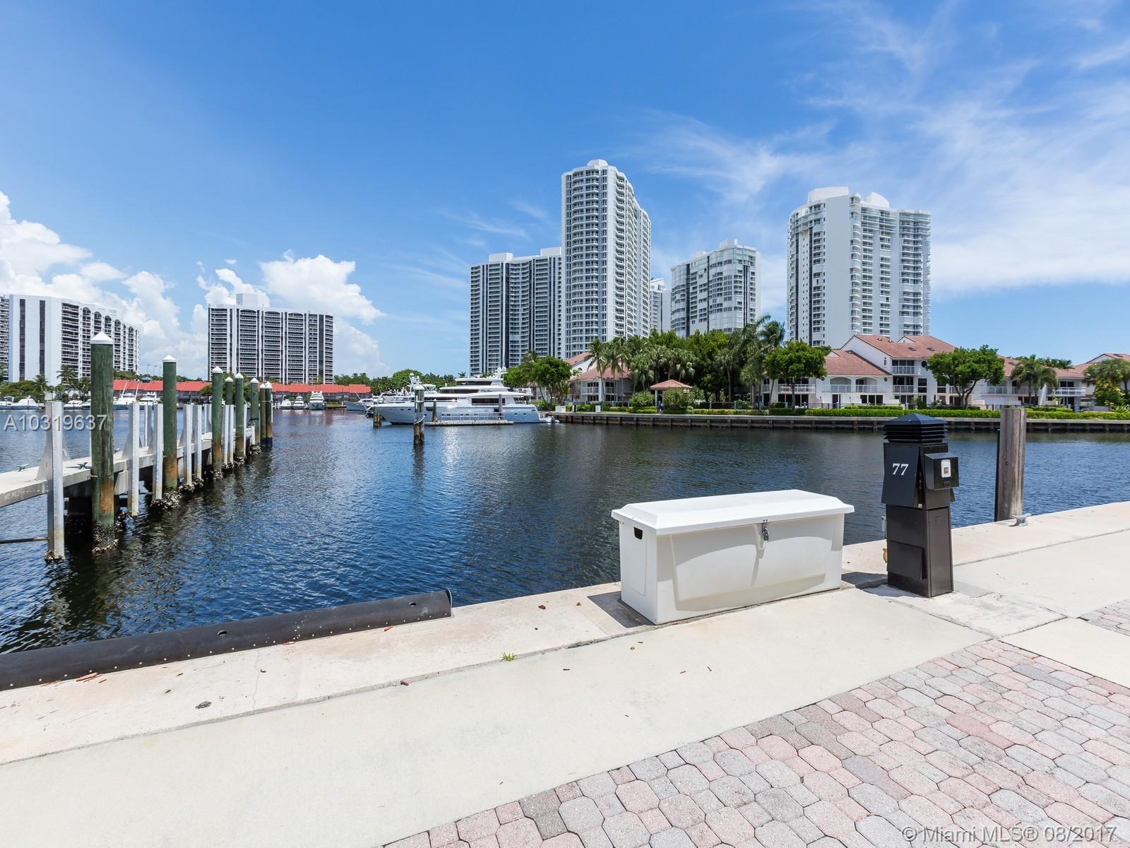 NAUTICAL PACKAGE 4/3 VILLA & 2 - 120' DEEDED YACHT SLIPS. Lifestyle surrounds this completely renovated smart home, furnished waterfront Garden Villa Residence in the gated community of Island Way in Aventura, FL. A spacious floor plan with cathedral ceilings complements the living areas off the first floor with one bedroom doubling as an office and cabana bathroom. Upstairs, 3 bedrooms flow with large closets and a master bedroom overlooking the marina and wide water views. Corner placement allows light facing north and east with water facing kitchen and great room. Two Car garage & community pool are steps away. Offered in a PACKAGE ONLY 2 – 120’ deeded yacht slips #77 & #78 and for a TOTAL OF $2,200,000. ALL OFFERS TO INCLUDE 3 FOLIOS, SEE BROKERS REMARKS. MLS A10330995 and A10324321.