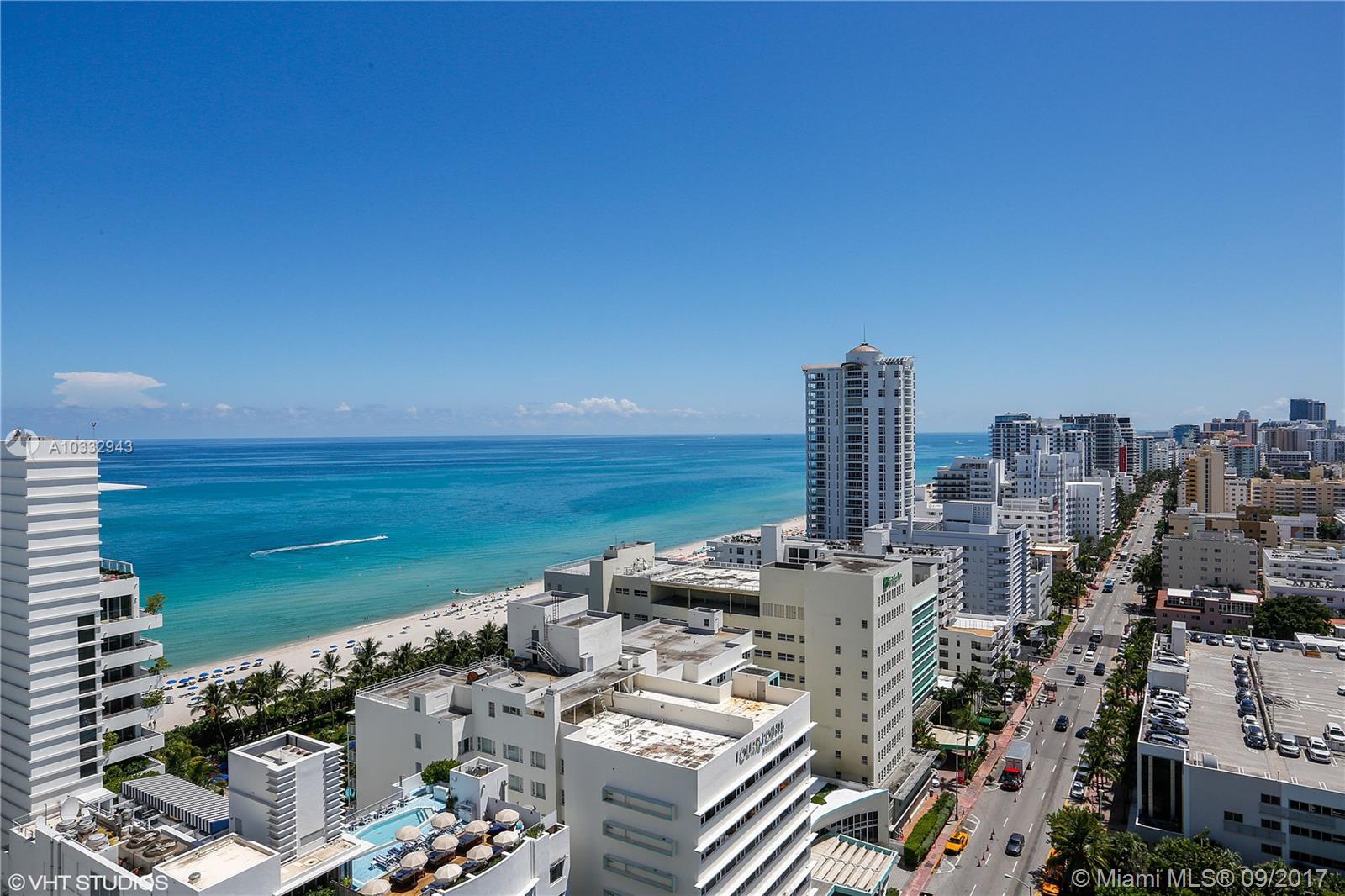 Beautiful and bright modern condo/hotel Penthouse studio apartment in the heart of South Beach steps to the ocean and restaurants. Enroll in hotel rental program & receive income while away! Features: Queen bed, marble floors throughout, kitchenette with sink, microwave and mini fridge, counter with stools, large master bathroom with jetted shower and a half bathroom. Enjoy the sunshine and views from the balcony which overlooks the pool and has a partial ocean view. Indulge yourself in the penthouse’s private rooftop Jacuzzi and wet bar with a sitting area.