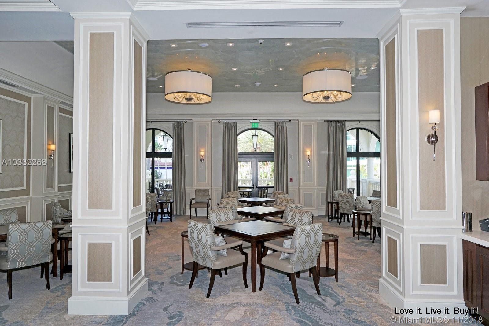 One of the happiest brightest apartments I have ever been in. Whimsical and fun, it's impossible to wake up grumpy in this unit. The views of the gardens, and Turnberry's golf course and lake are certainly charming and relaxing. This two bedroom was remodeled to offer a third room that can be used as an office or small child's room. Located on the 6th floor, easy to walk up and down from. On the fourth floor or mezzanine of the North Tower there is a small business cafe offering daily newspapers and T.V. The North Tower also offers it's own barbecue that will be turned on for you and cleaned up after you use it. There is an added dogie park so that your pet can mingle with other community pets. And of course, there is Porto Vita. The most luxurious neighborhood in Aventura!