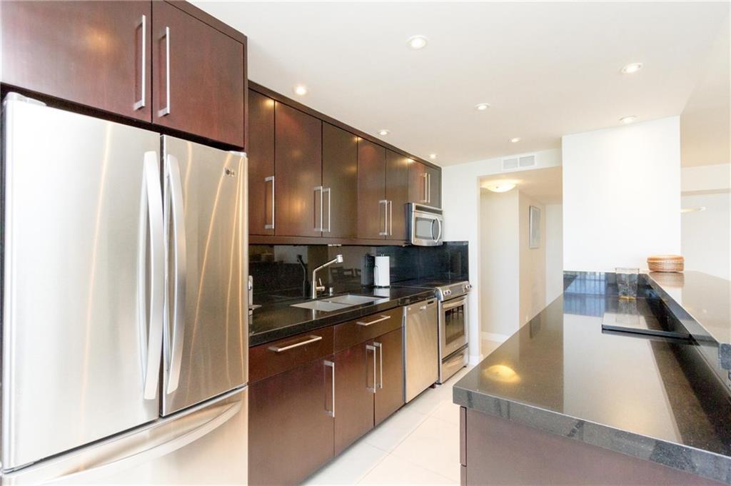 Spectacular open floorplan with a nice view of the water from your private balcony. This property has been completely renovated with high-end appliances, quartz countertops, recessed lighting, custom closets, large beautiful tile throughout and fine finishes. Ample storage space in unit, split-plan makes it ideal for guests. Building features fitness center, pool, sauna and more. Excellent location- walk to beach, shopping and dining. HOA fees include internet, maintenance of appliances, A/C and plumbing.