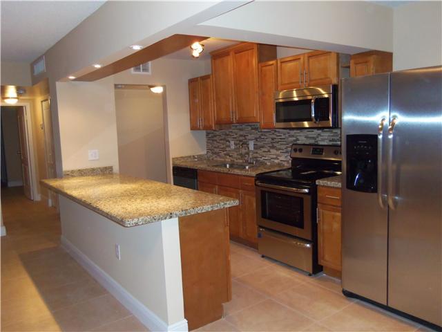 Tastefully renovated corner unit with kitchen boasting wood cabinetry, granite counters, stainless appliances, updated bathrooms. Spacious in size. This rare offering is also freshly painted, and offers neutral tile floors throughout. Can close immediatel y. Per Condo association, no lease, no pets, no age restrictions. Complex boasts pool, assigned parking, on site laundry! Minutes to beaches, shopping, restaurants.