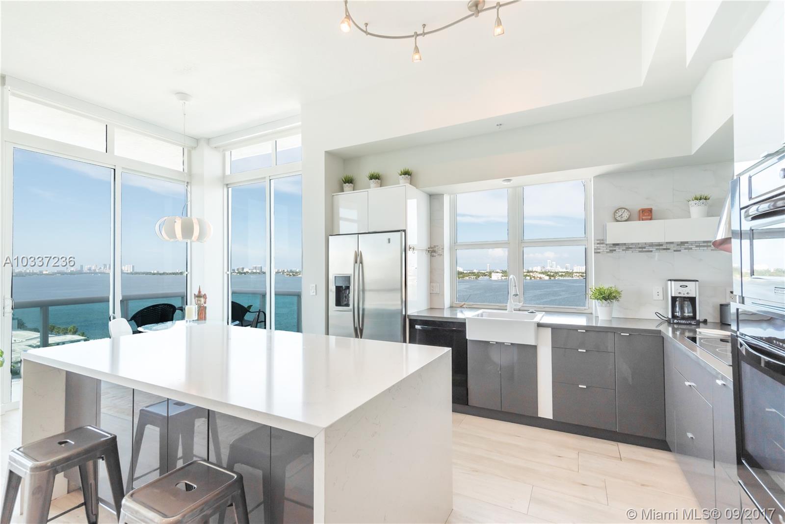 Have the best of both worlds; life in North Bay Village in a penthouse unit overlooking Biscayne Bay just minutes to the Beach and Miami's city living. Enjoy a sweeping view of the bay and ocean from this 1552 sq ft penthouse unit with 12' ceilings and high impact floor to ceiling windows. Completely remodeled with designer kitchen and baths and the latest in technology from door locks to lighting to the Nest climate and motorized blinds. This unit is priced to sell.