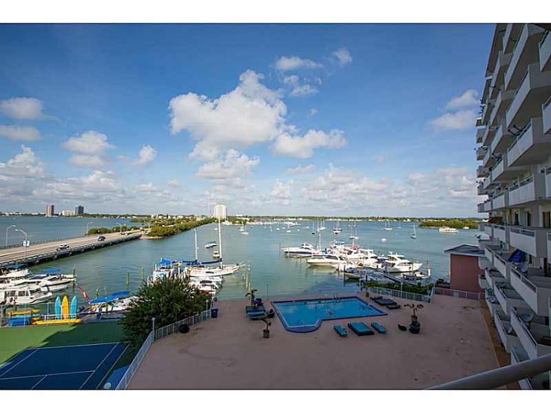 Amazing Downtown and wide bay, water views from the moment you open the door to this spacious and well appointed studio unit with a balcony! Building amenities include a HUGE, newly resurfaced, heated pool, marina, paddle board and kayak rentals newly res urfaced tennis courts & fishing dock. The unit is all tile w/ newer a/c, stove, toilet, and bath tub. Building is located on the charming Island of North Bay Village, which is it's own little wonderful city! Close to beach ,HWY, dinning and shopping!!