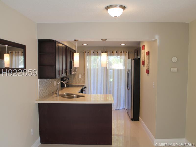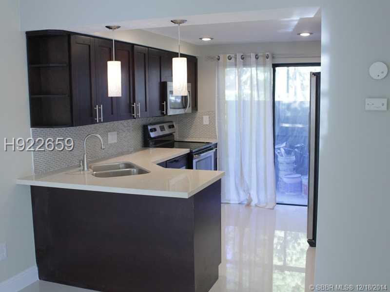 Absolutely gorgeous remodeled 2/1.5 condo; nice back patio/front porch. High end remodeling of kitchen w/ dark chocolate cabinets, tray ceiling w/ recess lighting in tray, pendant lights on the quartz counter tops, backed with glass back splash and lazy s usan. Brush nickel light trims to compliment with stainless steel appliances. Window treatments/ Lots of natural light new porcelain 24X24 tile throughout. Upgraded bathrooms with new floors, tub, vanities with granite counter tops/ splash glass tiles etc