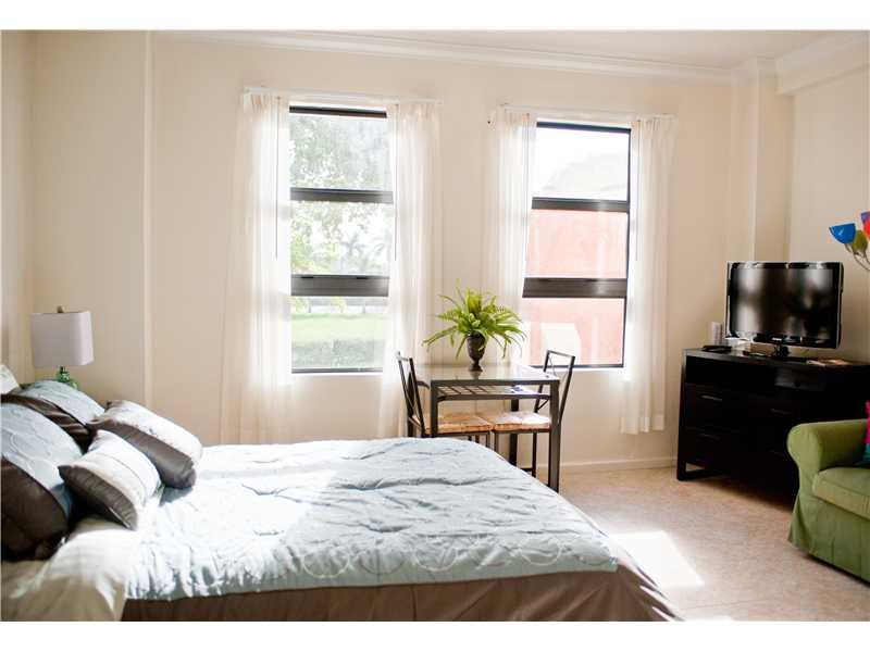 Large efficiency with full kitchen, 2 brand new windows w/views of park like area+intracoastal! Very few of these larger units exsist, let alone for sale. Great location on the beautifully renovated Hollywood Beach Broadwalk. Fabulous restaurants right outside your door! Totally redone. Use yourself, or have the hotel program rent it for you to pay most or all expenses. Unit feat 2 brand new windows- light, bright+ airy. New furniture, New kitchen, New everything!