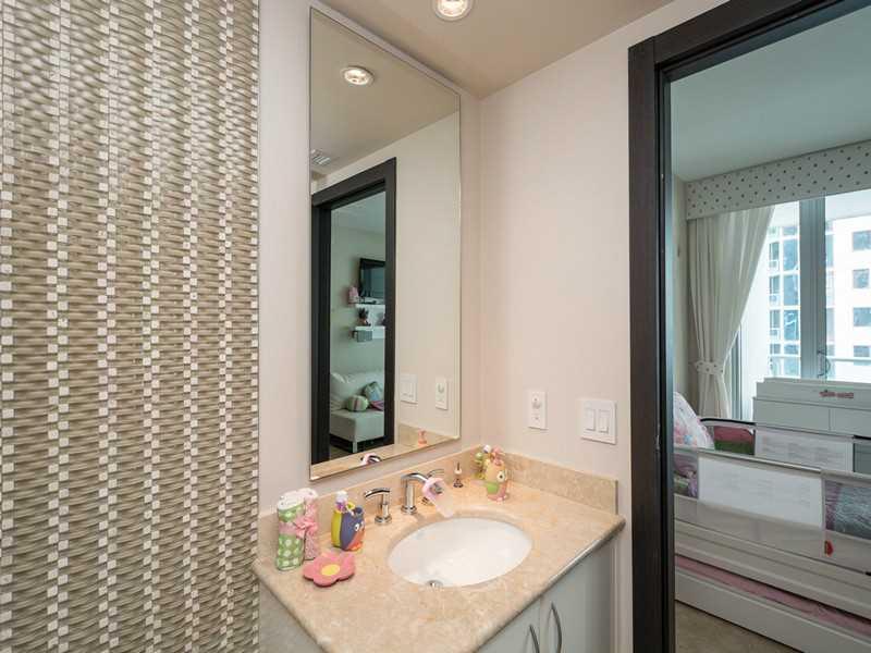 Stunning apartment in the always desired Jade Brickell. Owner spared no expense in this 3 bed/3 bath condo 24X24 travertine floor, custom stonework and built-ins. Glass doors lead the way to the ultimate in comfortable modern living. Open bay and city vi ews from every room. Full service building in the heart of Brickell. Tenant occupied until November 15, 2015.