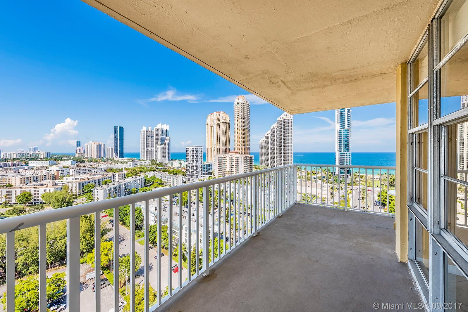 Sunny Isles is calling and what an amazing view from this super large 2 bedroom and 2 bathroom unit across the street from the ocean offers. Turn key, this unit has wonderful tile floors and is ready to move into immediately. The building is extremely well run and offers a pool, gym, library and billiard room. 40 year This truly is an exceptional building with low fee's and very well run. Sunny Isles is an amazing oceanfront community with exceptional school and lots of parks. No need for a car here if you just want to relax and enjoy a resort community. Taxes do not reflect Homestead