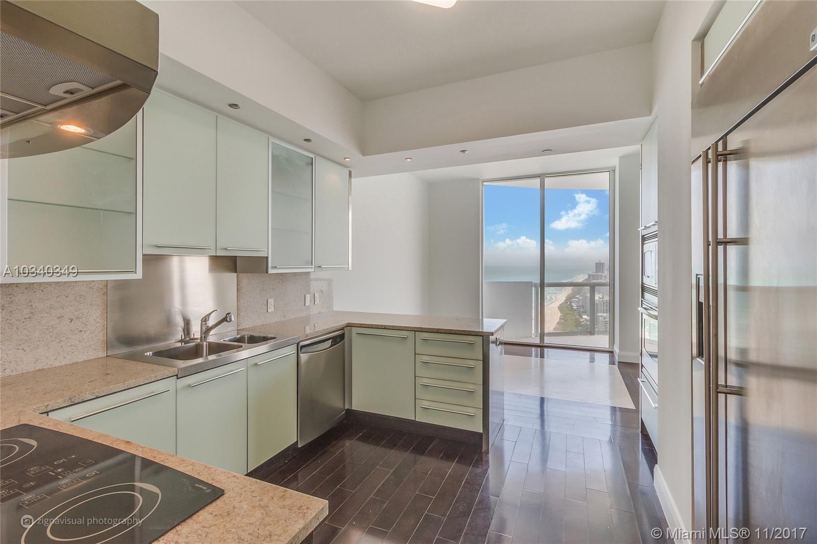 UNIQUE 46/47th FLOOR BANK OWNED TOWER SUITE FOR SALE. Exquisite Akoya Condo Penthouse. A Rare REO offering with 2 Penthouse Levels, 2 Expansive Balconies, 2 Deeded Parking Spaces and 2 On-Suite Bedrooms / Bathrooms with Large walk-In Closets. Located on the 2 Top Floors, and the Tallest Building in North Beach area of Miami Beach, the Tower Suite Offers the best views and luxury for North Beach. Truly Unobstructed Panoramic Views of the Ocean, Bay, Miami Beach and Down-Town Miami from 46 / 47th Floors. Luxury Interiors with European Designer Kitchen by Salvador Kitchens, Stainless Steel, GE Monogram Refrigerator and Granite Counter-tops. Other Features Include Floor-to-Ceiling Glass Windows and Doors and Wood / Marble Floors. Seller will Pay 3 years of Condo Fees at closing for Buyer.