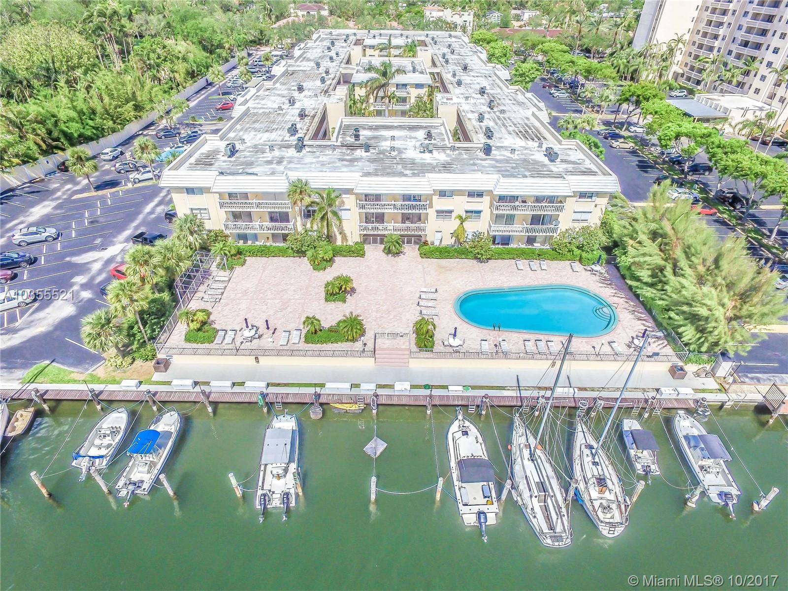 Remodeled 2/2 located along Gables Waterway. High Impact windows & doors, Marble flooring throughout. Spacious Master bedroom with walk-in closet. Open balcony. Kitchen with breakfast bar, built in cabinetry. Heated pool overlooking marina. Laundry facilities on every floor. Boat Dock can be rented for around $200-300 a month. Can dock up to 42 ft boat. Based upon availability may also be purchased for around $100k.