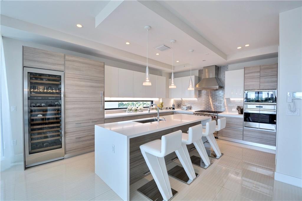 Contemporary open floor plan in highly desirable SE corner of Aquavita. Deep water dockage & fully equipped power station incl. for boat up to 50'. Custom kitchen w/upgraded appliances, gas range, dbl ovens, 2 wine refrigerators, lrg center island & pantry. 10' ceilings, waterside balcony, 3br, 3fba, 1hba & 2 garage parking spaces. Lavish master suite & bath plus 2 walk-in closets. 3rd bedrm boasts sliding glass door. Salt water chlorinated heated pool! Sq ft from developer's floor plan believed accurate.