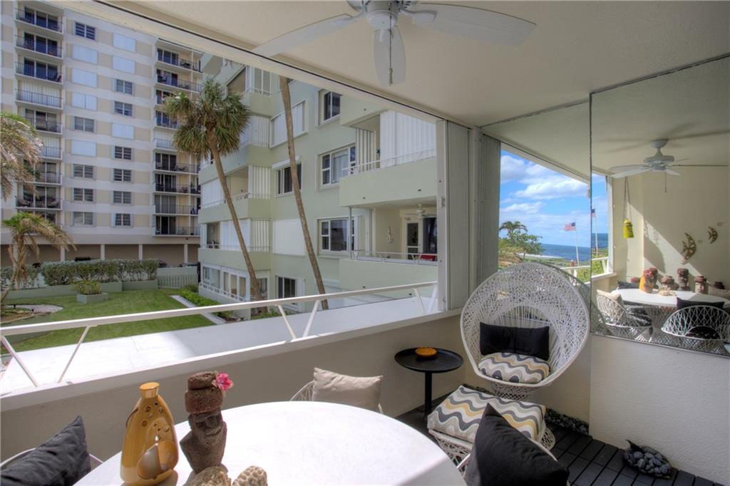 Midcentury perfection is yours in this 1 BR co-op in funky Crane Crest Apartments right on the beach. Gorgeous unit nicely updated w/ Pergo floors, bright white kitchen w/ distinctive Black Mosaic Gold Granite countertops, tastefully modern bath, & deep, comfortable balcony overlooking the ocean. Extra Large storage room & laundry steps from unit. Oceanside pool w/ shaded bbq area, direct beach access. HOA includes cable TV. Complete concrete restoration recently completed. 50% financing available.
