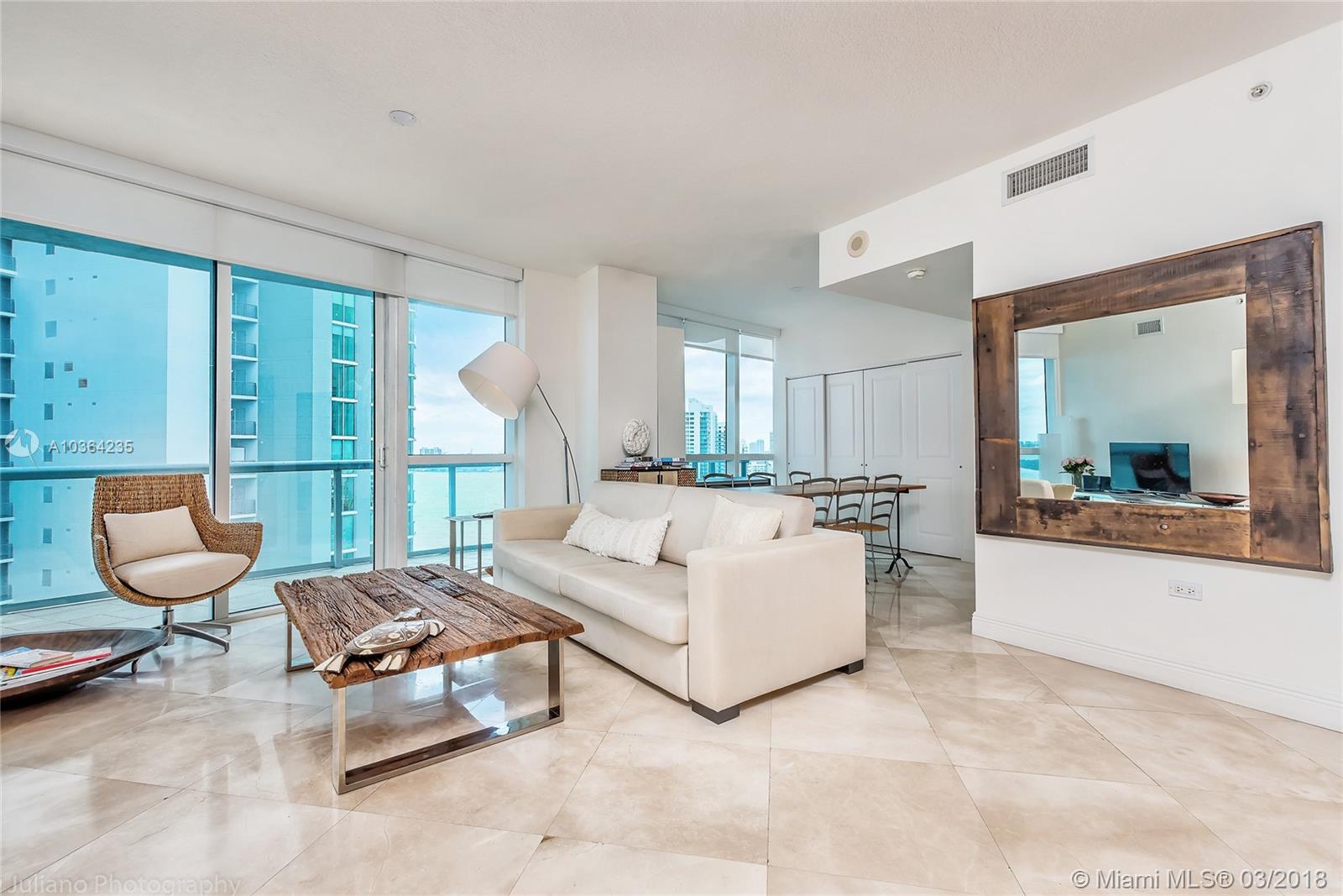 Exceptional opportunity to own a 2/2 in the Edgewater district, with incredible water and city views featuring marble floors throughout, and a 264 Sq. Foot Terrace. This elegant apartment at the Platinum offers 24-hrs concierge and security. Amenities include: heated lap-pool, Jacuzzi, fitness center, sauna-steam room, clubroom, outdoor lounge. Within minutes' drive to Downtown, Midtown, South Beach, I-95 and the Miami Airport. Walking distance to Publix, Starbucks and restaurants.
