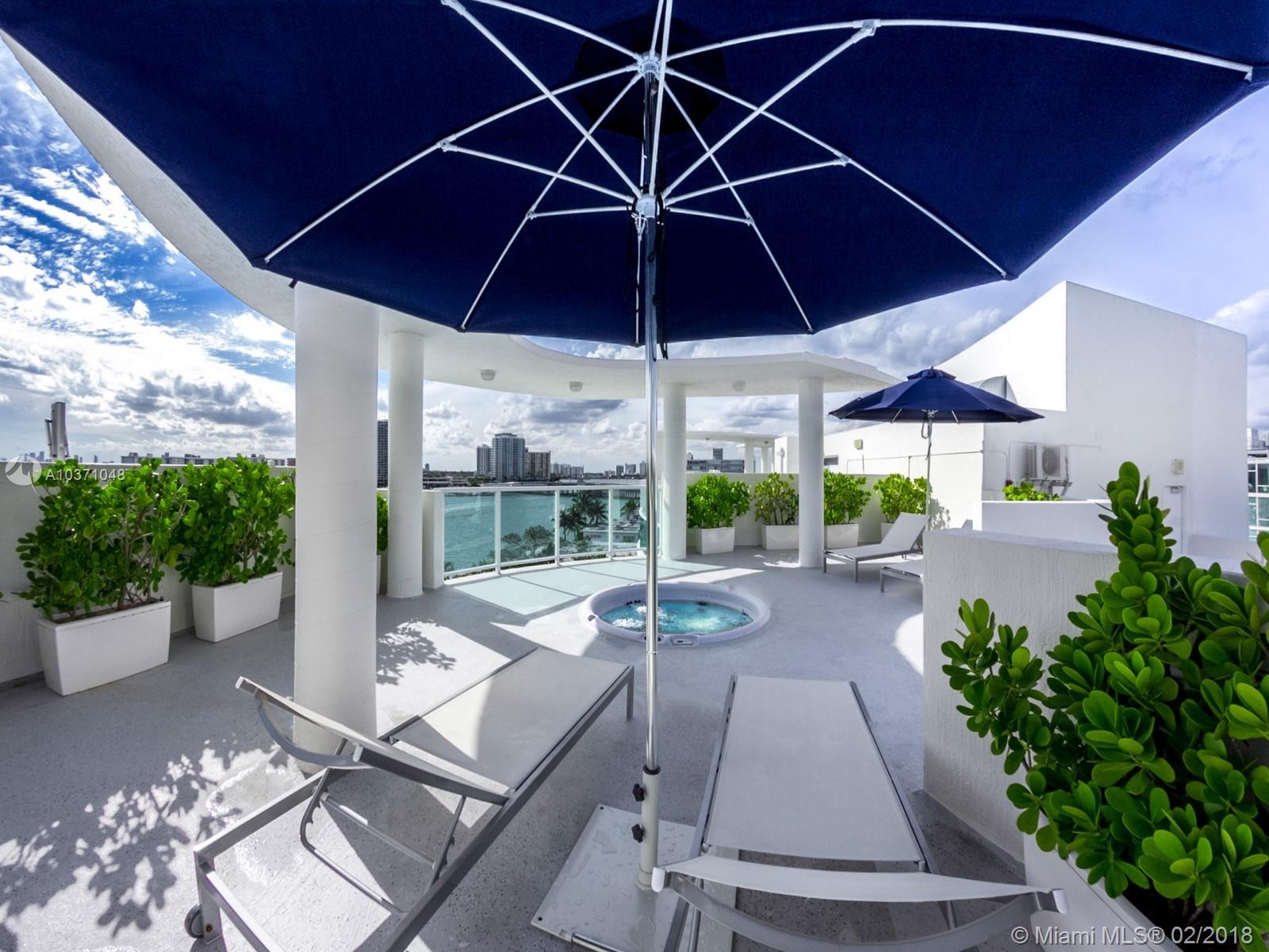 Baylights (2012) Miami Beach LAST AVAILABLE PENTHOUSE with an extremely large private terrace from the residence & also above. This 2,050SF rooftop terrace is accessible by private elevator where you'll find your personal Jacuzzi facing South across the open waterways to South Beach & Downtown Miami over Biscayne Bay - Unique property w/gorgeous views and a spacious floor plan to match. 2 Garage Parking, Secure Code Entry, 12 Neighbors in total and a community pool & gym below. Very private. Very secure.