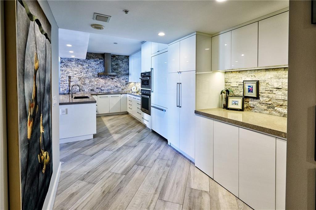 Private elevator opening to this beautiful contemporary modern unit renovated with finishes equivalent to Yacht quality - this 2 bedroom model has been converted to a huge 1 bedroom with 2 bathrooms that walls could be put back if extra bedroom needed. Gorgeous linear porcelain tiles thru-out unit, an exceptional chef's dream kitchen with Thermador professional series appliances inc. rotisserie oven, induction cooktop, Perlick drink refrigerator & much more! Fabulous intracoastal views from large balcony.