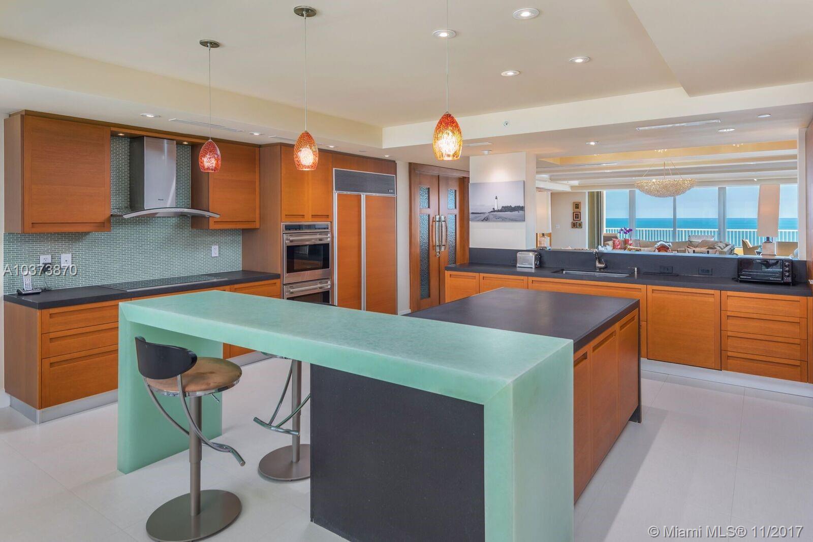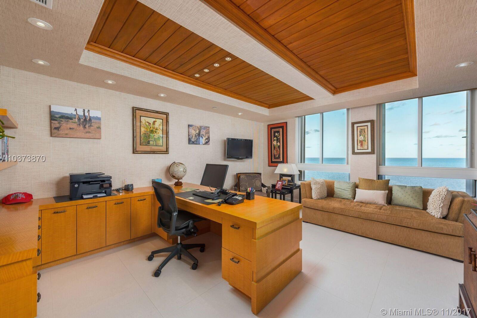 Enjoy the ultimate level of luxury living from this magnificent and stunning penthouse in the prestigious Ocean Club Condominium.This paradise in the sky was completely redone with the highest quality craftsmanship and design.Spoil yourself with breathtaking views of the ocean, bay, and Miami skyline from this unique residence. One of a kind, sophisticated and flow-thru offering 5,100 sq ft under a/c with 4 bedrooms,3.5 bathrooms,open living room,dining room,family room,office,sleek kitchen equipped with high end appliances,custom built-in units, lighting system and amazing large terraces where you can enjoy the gorgeous sunrises and sunsets.Fall in love with the resort life style of the Ocean Club community,beach,pools,tennis,restaurant,gym,spa,children’s playground plus security.