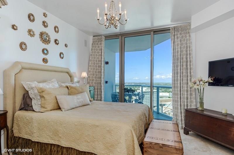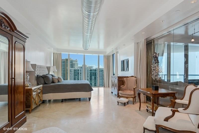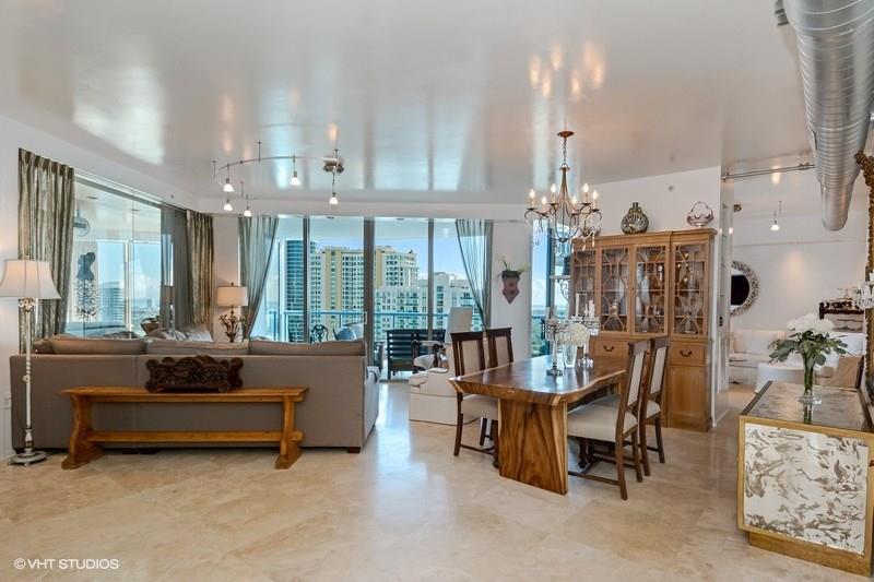 Serious seller is relocating and has priced this 30th floor gem for a quick sale! Unique, modified Columbus model with cool, exposed stainless A/C duct work and solid glass wall to huge master bedroom gives a real modern retro feel. Polished marble flooring throughout the unit, 3rd bonus room is ideal for home office/den, one generous sized balcony facing East with awesome views of downtown, Las Olas and the ocean, 2nd balcony facing West offering great views of the city lights and new river.