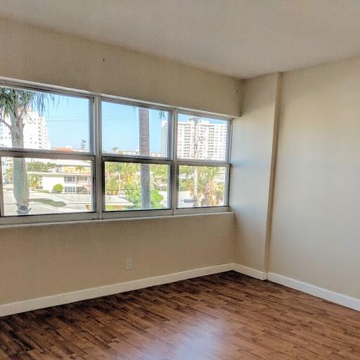 PRICED TO SELL!Fabulous beach location Boutique building. 2 bed 1 bath wood laminate floors, granite/stainless kitchen, new refrigerator, Impact windows & doors,open balcony. Building has completed the 40 yr inspection/restoration. Walk to the beach, dining & shopping, water taxi. Relax by the pool. Great Parking Space on the E side of the building! Multi Million Dollar Neighborhood walk to Fabulous New Beach Resort under development. Pet Friendly Building! Must see!Best price in the building!!