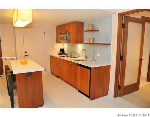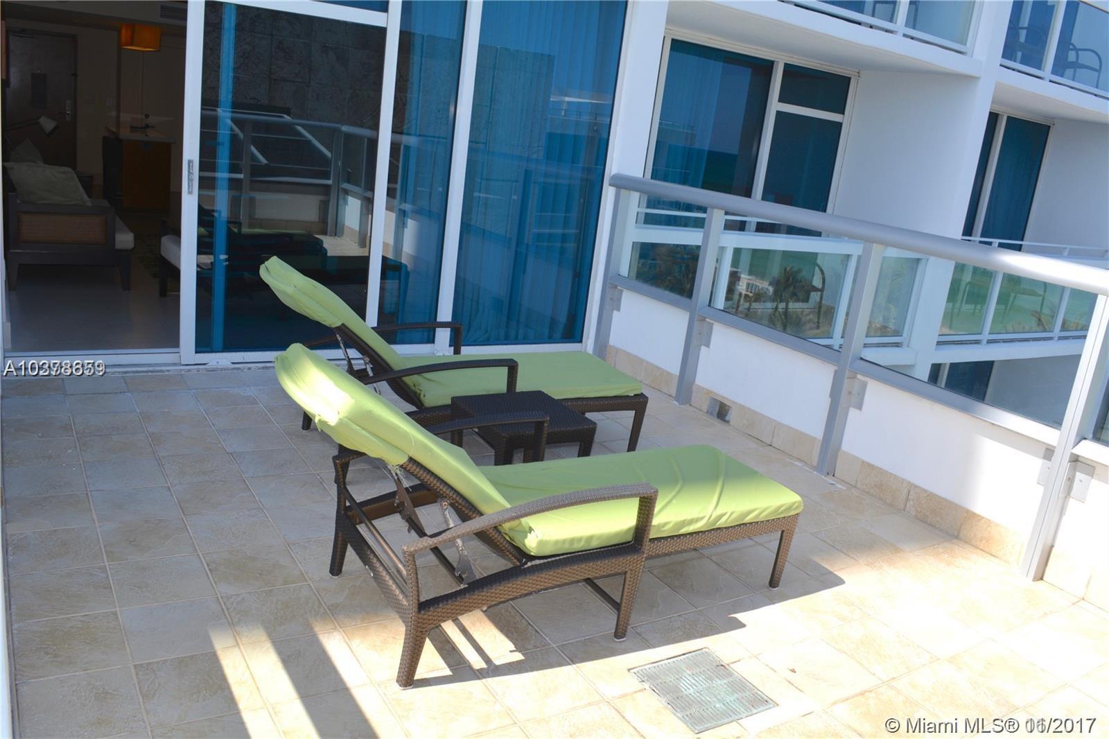 Rare opportunity to own a one of a kind condo-hotel unit with oversized east facing terrace with amazing ocean views. This turnkey 1 bed/1 bath is has 2 balconies including an expansive terrace off of the living room perfect for lounging in the sun. This spacious condo-hotel suite has a king bed in the master, kitchenette with refrigerator, stove, microwave, dishwasher, washer/dryer and all hotel furnishings. Includes access to 70,000 sqft fitness center and spa, 4 pools and classes. Other amenities include restaurant, cafe, salon, concierge, security and valet. Direct beach access. This unit is not currently enrolled in the hotel program but has the ability to be entered should new buyer elect to do so. Use as much or as little as you like and generate income while it is not being used.