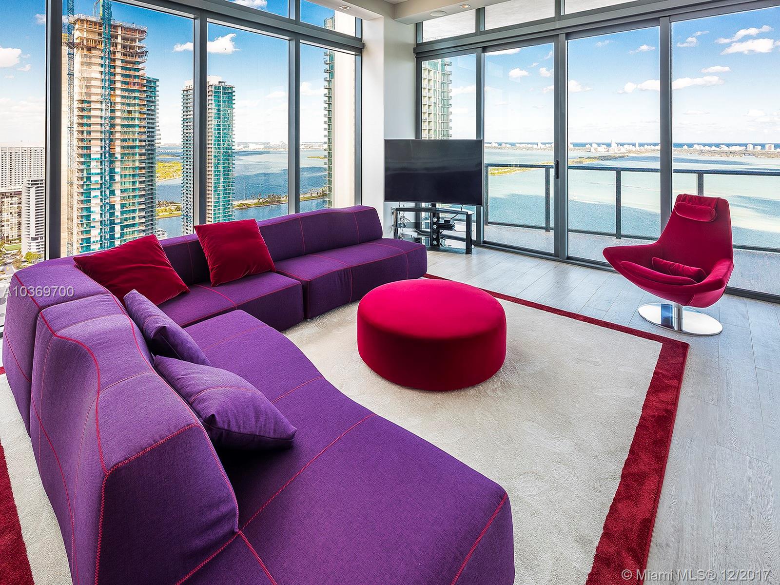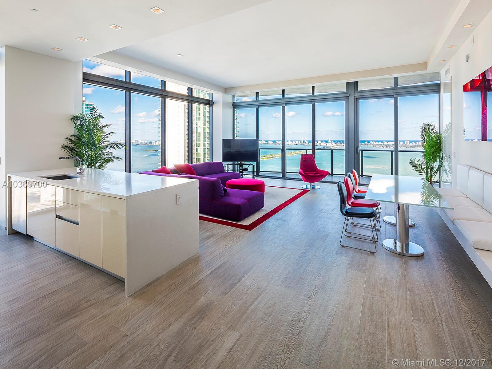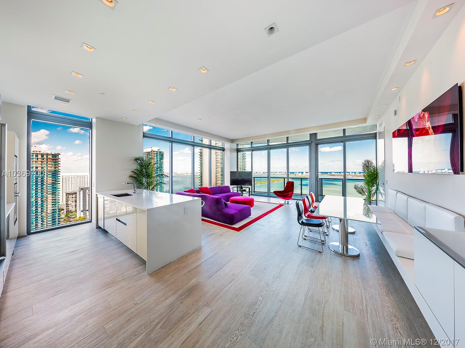 Stunning 4 Bed/4 Bath Corner Lower Penthouse in Edgewater at Icon Bay. No expense was spared as every detail was professionally designed from wall coverings to new seamless Italian doors to lighting fixtures. For the most efficient use of space, some floorplan changes were made to make this home spectacular. High ceilings allow for expansive rooms with incredible views of Biscayne Bay and the Atlantic Ocean.