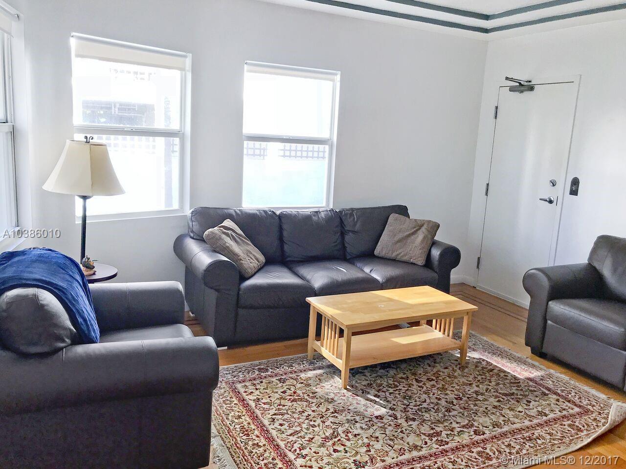 VERY CHARMING 1 BED/ 1 BTH CONDO CENTRALLY LOCATED IN THE HEART OF MIAMI BEACH. THIS ART DECO CLASS HAS PRESERVED IT'S ORIGINAL AND INFAMOUS, MIAMI EXCLUSIVE ARCHITECTURE WITH NEWER RENOVATIONS AND UPDATED CONVENIENCES. LIKE A NICE DECK ON THE WATER WITH CHAIRS TO COME HOME AND UNWIND OVER A NICE GLASS OF WINE. GREAT FOR ANYONE WITH A PADDLE BOARD OR KAYAK. FEATURES INCLUDE BEAUTIFUL HARDWOOD FLOORS, CENTRAL AC, HURRICANE IMPACT WINDOWS, WASHER & DRYER IN UNIT, TELE CAM GATED INTERCOM & SECURITY CAMERAS. GORGEOUS GROUNDS REFLECT A ZEN OASIS LIFESTYLE RETREAT W/ A VIBRANT, HIGHLY WALKABLE NEIGHBORHOOD. JUST STEPS AWAY FROM WKND FARMERS MARKET,RESTAURANTS, PUBLIC TRANSPORTATION & BEST OF ALL THE BEACH! TENANT OCCUPIED TO JUNE 2018 PAYING $1400 A MONTH.
