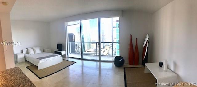 Spectacular studio in best location on Brickell Avenue!. Unit features: partially furnished; open kitchen with stainless steel appliances and granite counter-tops; motorized roller shades (screens and black outs); beautiful 24x 24 marble floor; nice balcony, washer & dryer inside the unit, one of the best layouts for a studio in the building. Walking distance from metro mover & metro rail station; restaurants, bars, supermarkets, Miami Brickell Citi center and much more!
