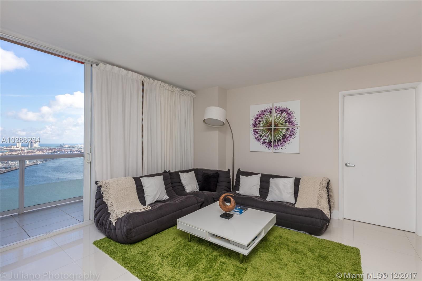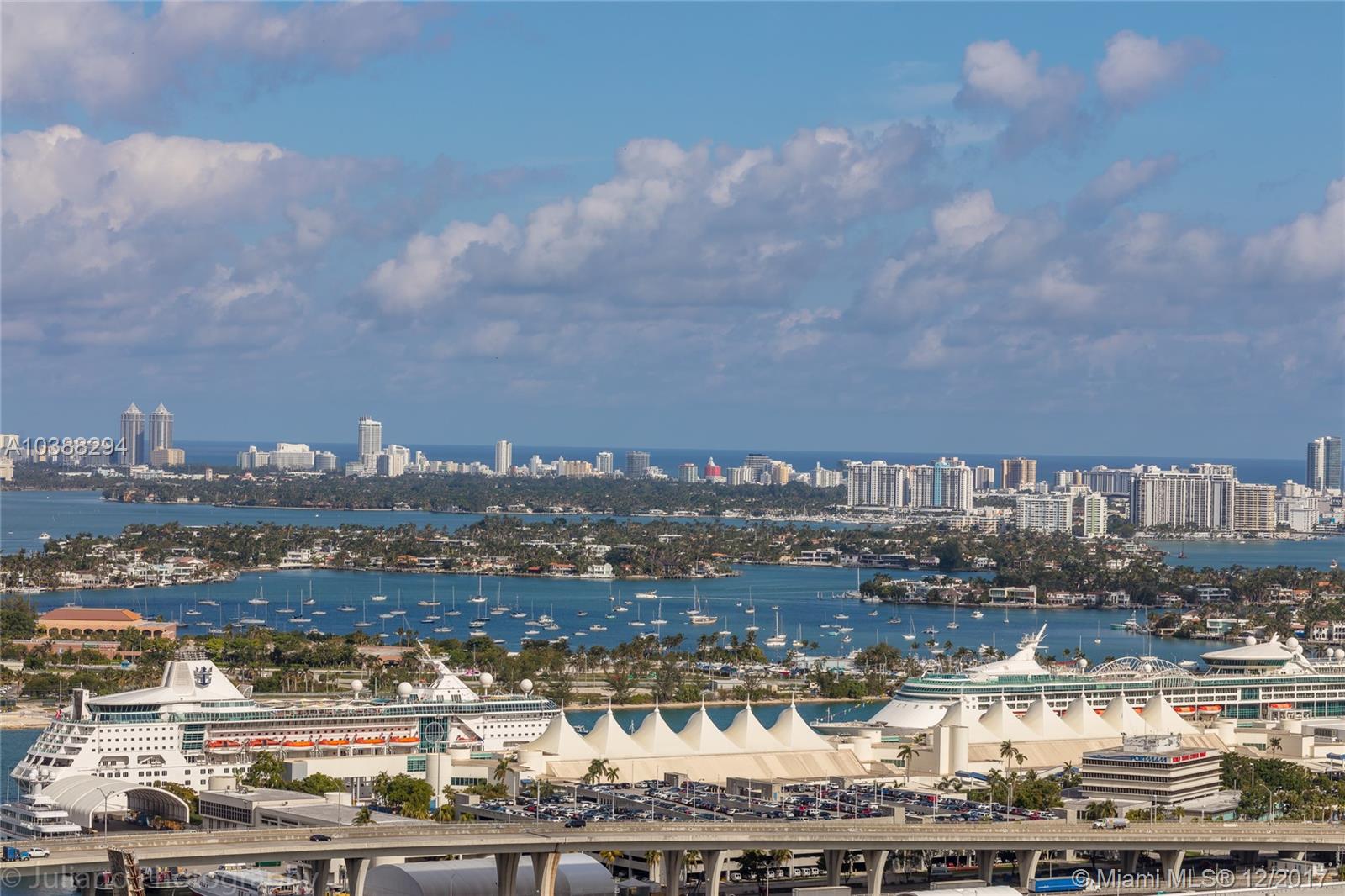 Immaculately remodeled residence with direct east views fronting Biscayne Bay and extending to the Atlantic. The uniquely positioned open balcony of unit 3806 gives a front roll seat to the Miami Cruise Port, 4th of July Fireworks, and New Years countdown. Great floor-plan includes 2 bedrooms plus an enclosed Den and 2 completely re-tiled bathrooms. Porcelain floors extend throughout the apartment including the balcony. This unit offers a large kitchen with ample cabinet space and generous closet space in all bedrooms. 50 Biscayne is a well managed building with a strong financial backbone and superb amenities, including one the best pool decks in the area and large fitness center.