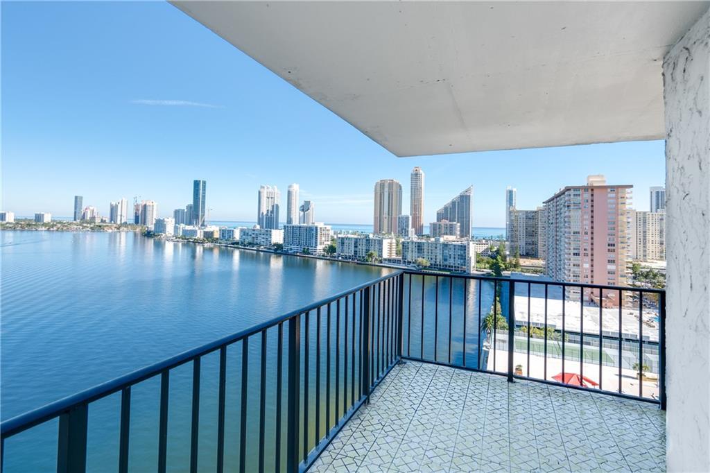Enjoy expansive views of Sunny Isles and Atlantic Ocean to the east & spectacular, unobstructed northern views of the intracoastal from the living area and wraparound balcony. The interior is bright and open with lots of potential (kitchen has newer appliances). Take the elevator downstairs to the gym, game room, media center, pool/bbq area and event space; or the easy walk to the public beach access and 4 parks, all located within a 1 mile radius from the building. Additional parking for low monthly fee.