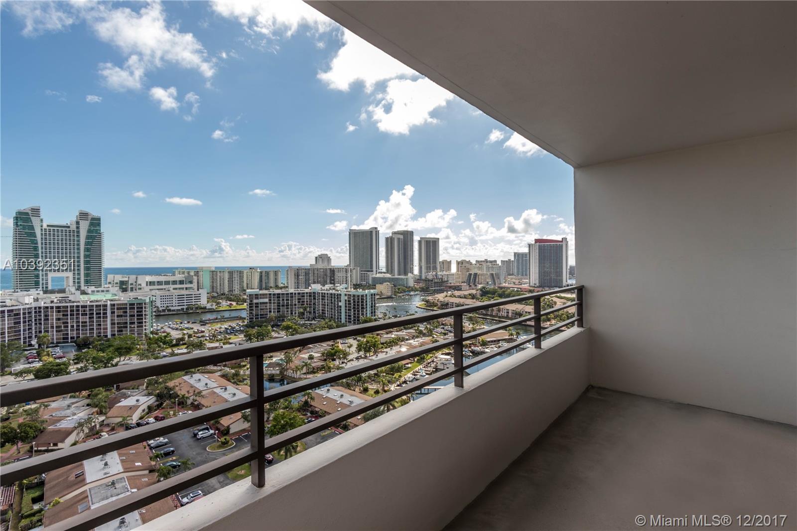 Wait till you see this ocean view from the 22nd floor! Meticulously kept 1 bedroom, 1.5 bath unit. Big bedroom with sitting area & ocean view. Living/dining room is very spacious. Beautiful open balcony overlooking the intra coastal, the bay & the ocean. See the sun come up in the morning & the city lights at night. Property has 2 heated pools, 5 tennis courts, billiards, valet, 24 hr security, garage parking, BBQ area, courtesy bus, community marina & a brand new fitness center coming. Minutes walk to shopping, dining, banks, Starbucks & the beach. Malls, casinos & sports arenas nearby. OK to lease 1 time per year. 1 Cat allowed!!!!! 20 pounds or less. 2nd parking space available for a fee.