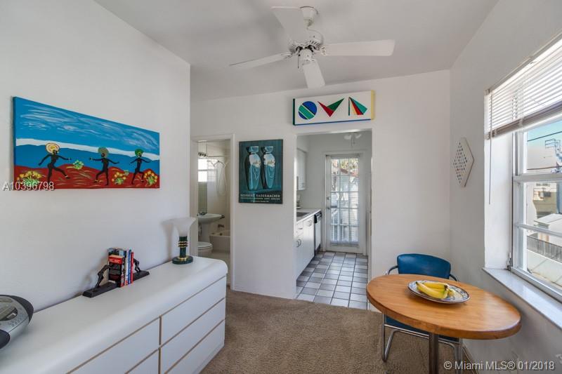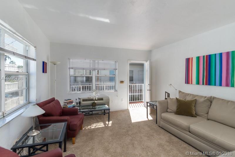 Large, Miami Beach studio. Corner unit very bright and sunny with large windows on three sides, new bathroom and updated kitchen on beautiful tree-lined Meridian Ave. one block from Flamingo Park tennis Pavilion. Walk to Lincoln road, Ocean drive and the Beach. Furniture available for sale