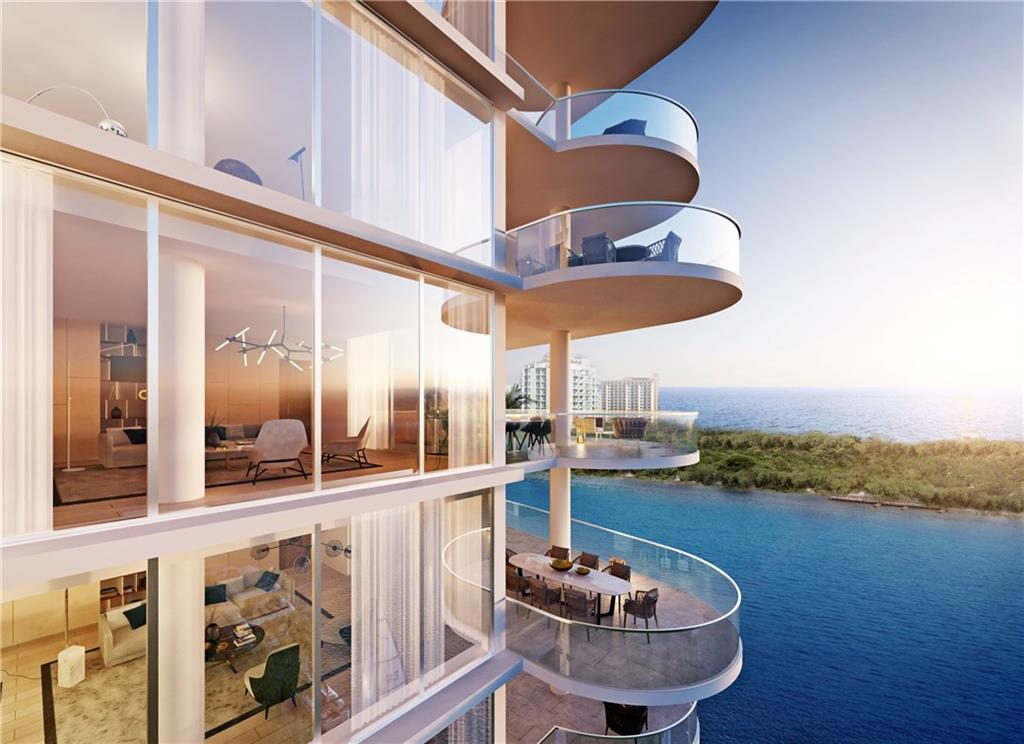 AQUABLU A NEW CONSTRUCTION CONDOMINIUM ON THE INTRACOASTAL WATERWAY, CONTEMPORARY DESIGN. UNOBSTRUCTED VIEWS OF THE OCEAN, INTRACOASTAL & CITY SKYLINE. 3BR, 3.5BA, GREAT RM, FAMILY RM, 10' CEILINGS, CULINARY KITCHEN: WOLF & SUBZERO APPLIANCES (INDUCTION COOKTOP), 2 OVERSIZED BALCONIES W/SUMMER KITCHEN, FURNITURE READY, FITNESS CENTER, SALT WATER CHLORINATED HEATED POOL, DOCKAGE AVAILABLE, VALET & CONCIERGE. WALK TO THE BEACH, SHOPS & RESTAURANTS. (OWNER FINANCING) SQ. FT FROM DEVELOPER BELIEVED ACCURATE.
