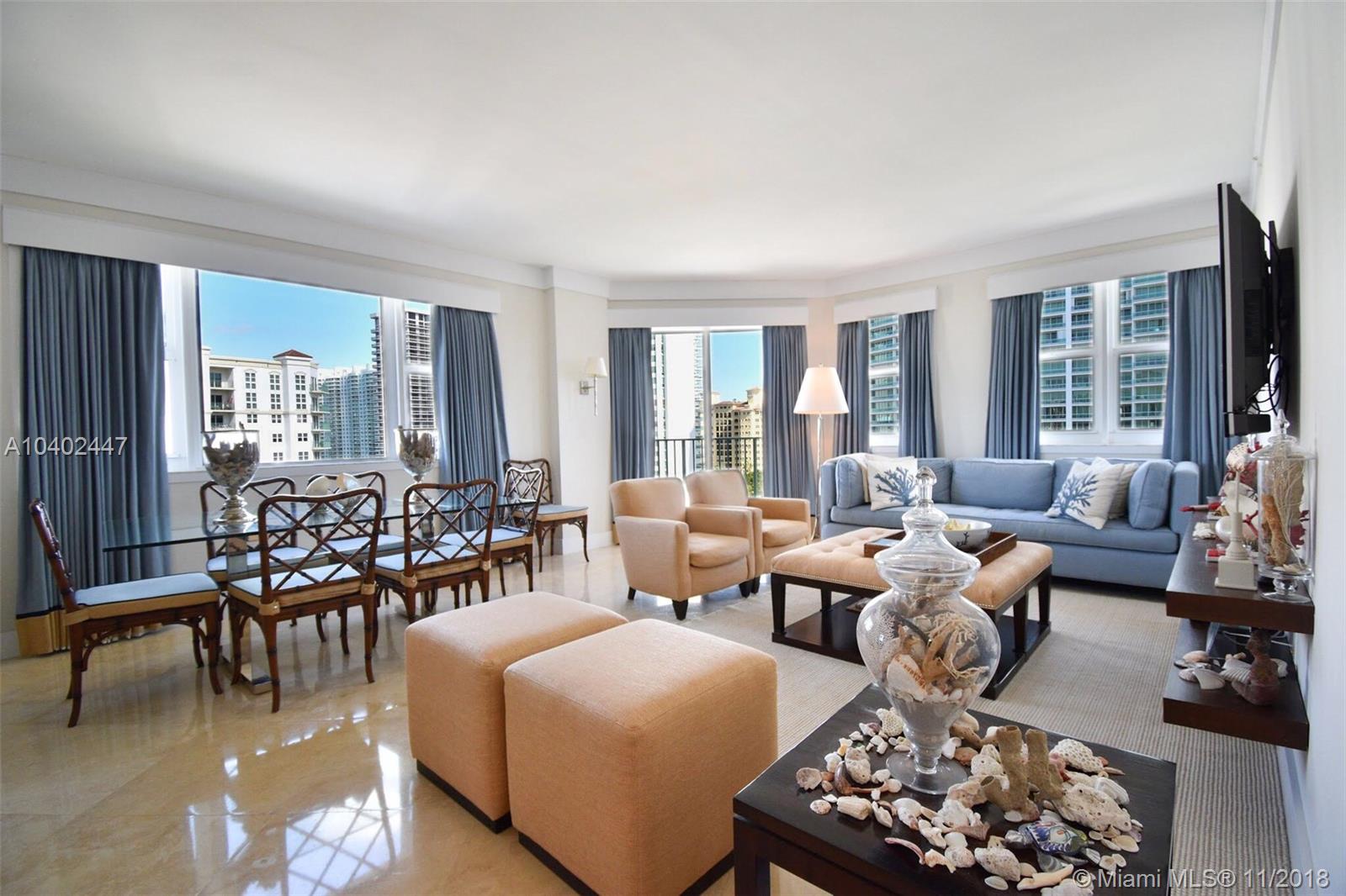 ENJOY BREATHTAKING OCEAN, GOLF AND CITY VIEWS FROM THIS SPECTACULAR 3BEDS/3BATHS EN-SUITE CORNER, ALMOST 1700 SQFT + 71 SQFT OF BALCONY HIGH FLOOR RESIDENCE, LOCATED IN THE DESIRABLE FULL SERVICE TURNBERRY VILLAGE COMPLEX WITH AMAZING AMENITIES, 24 DOUBLE HOURS SECURITY, VALET PARKING AND MORE.. THIS STUNNING UNIT FEATURES FABULOUS IMPORTED MARBLE FLOORS THROUGHOUT, GORGEOUS KITCHEN AND BATHROOMS, CUSTOMIZED CLOSETS, WINDOW TREATMENTS AND LIGHT FIXTURES. SELLING UNFURNISHED, IT COMES WITH 2 SIDE-BY-SIDE ASSIGNED COVERED PARKING SPACES. IT IS IN IMPECABLE CONDITIONS, BARELY USED BY CURRENT OWNERS! WON'T LAST! PRICED TO SELL!