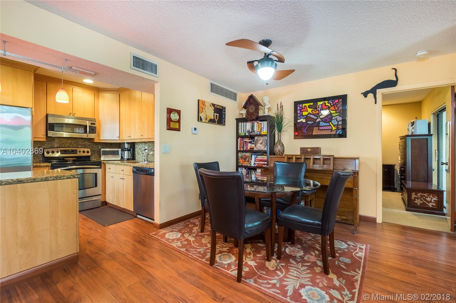 GORGEOUS 2ND FLOOR CORNER CONDO WITH POOL VIEW! MATURE LANDSCAPING PROVIDES DYNAMIC GROUNDS APPEAL! OPEN ENTRY WITH CHARMING BAY WINDOW! OPEN REMODELED KITCHEN WITH 42 INCH WOOD CABINETS, GRANITE COUNTERS & BACKSPLASH WITH UPGRADED STAINLESS APPLIANCES OPENS TO LIVING/DINING ROOM! LARGE SCREENED BALCONY WITH LAUNDRY CLOSET & FRONT LOADING MACHINES! CEILING FANS, WALK-IN CLOSET, ALARM, NEW CENTRAL A/C, ACCORDION STORM SHUTTERS ADD TO THE VALUE! SHOW & SELL THIS WINNER!