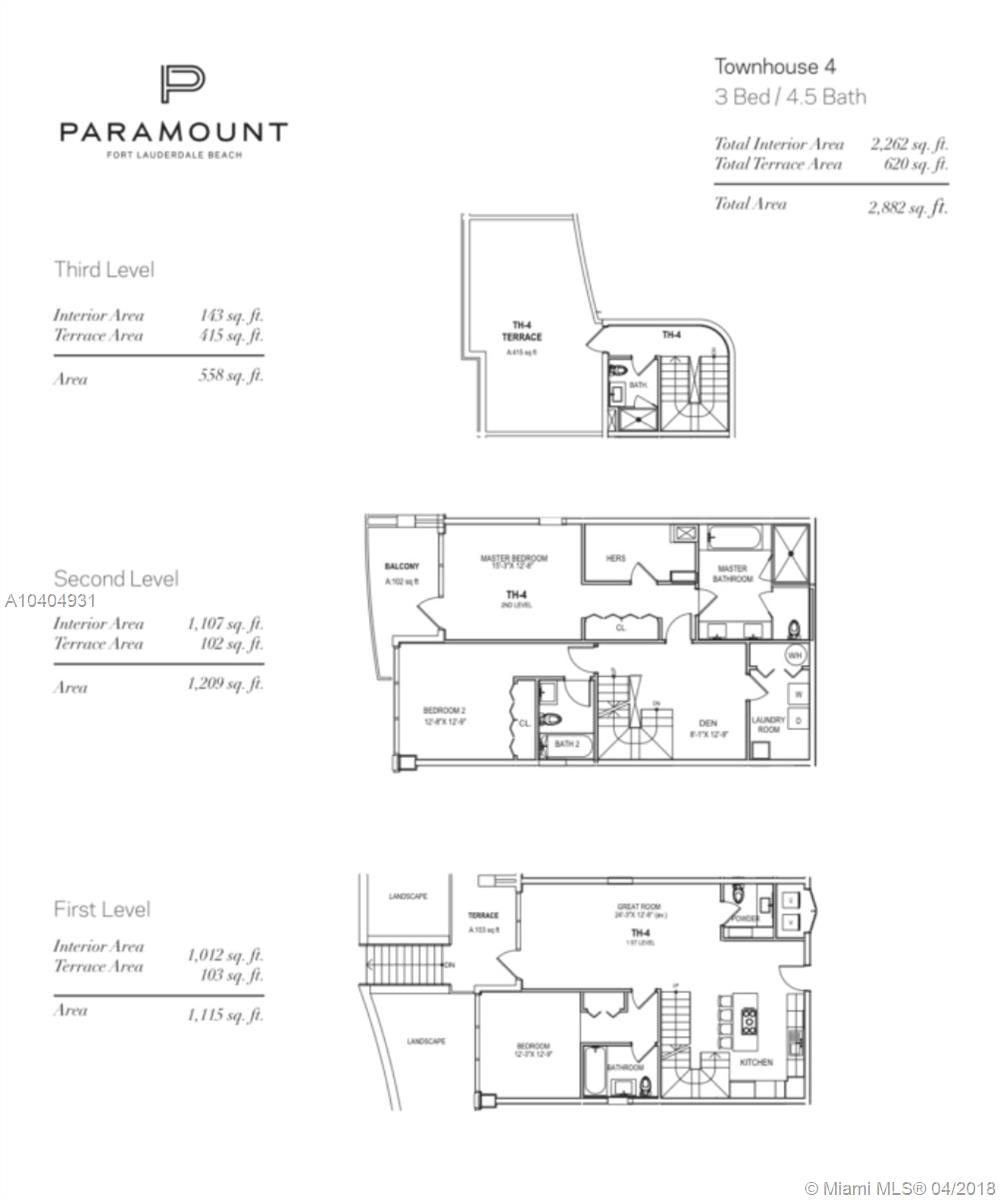 Stunning three level townhouse with private balcony in newly constructed and beach front Paramount Fort Lauderdale. Direct ocean access, full amenities, infinity pool, concierge service, integrated smart building technology, on-site restaurant. This is only ONE of six townhouses, currently the ONLY one available for sale. 3 bedrooms plus a den, 4.5 bathrooms, private terrace, impeccable finishes, high end appliances, superior design. MUST SEE AND EASY TO SHOW.