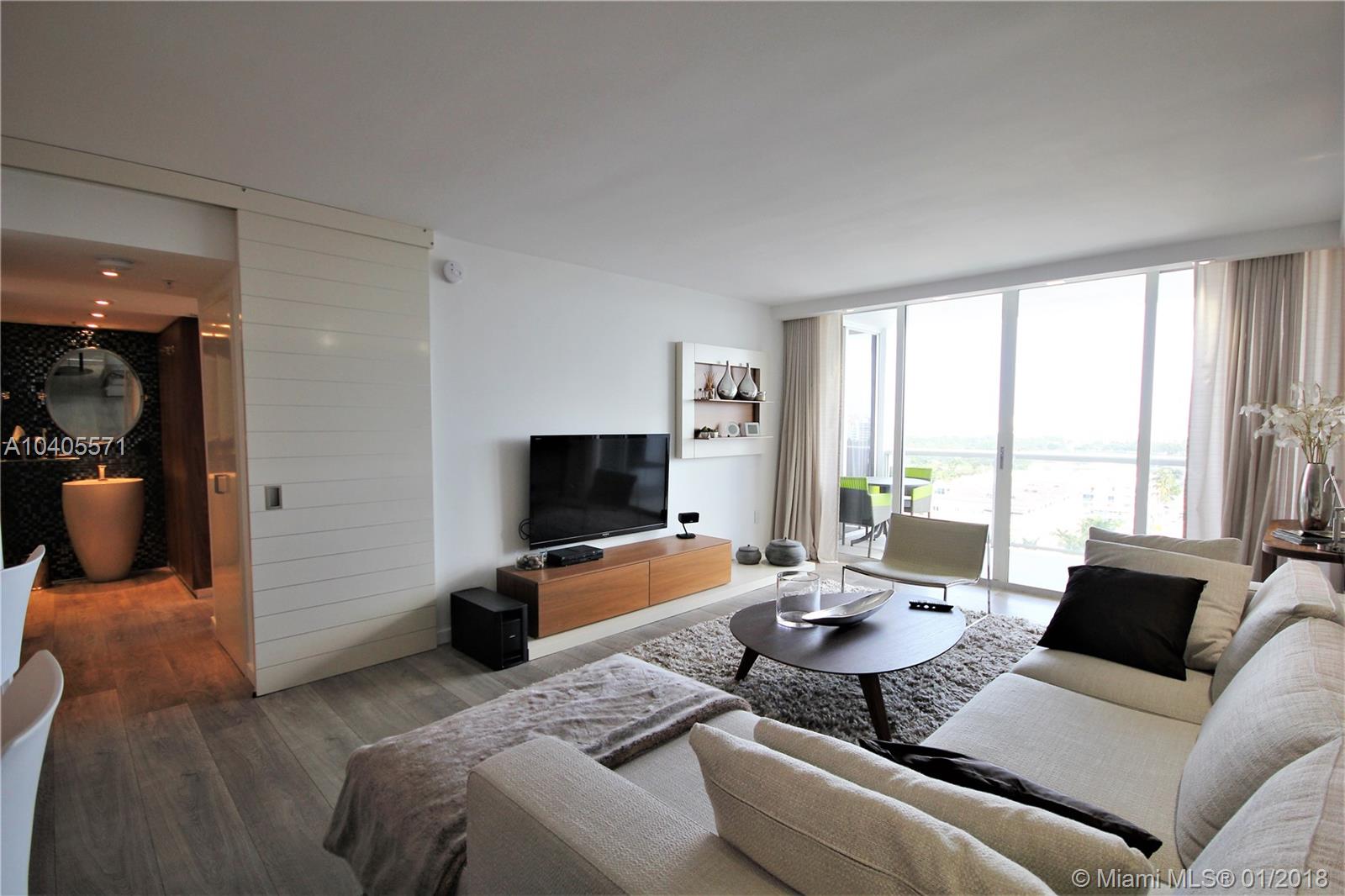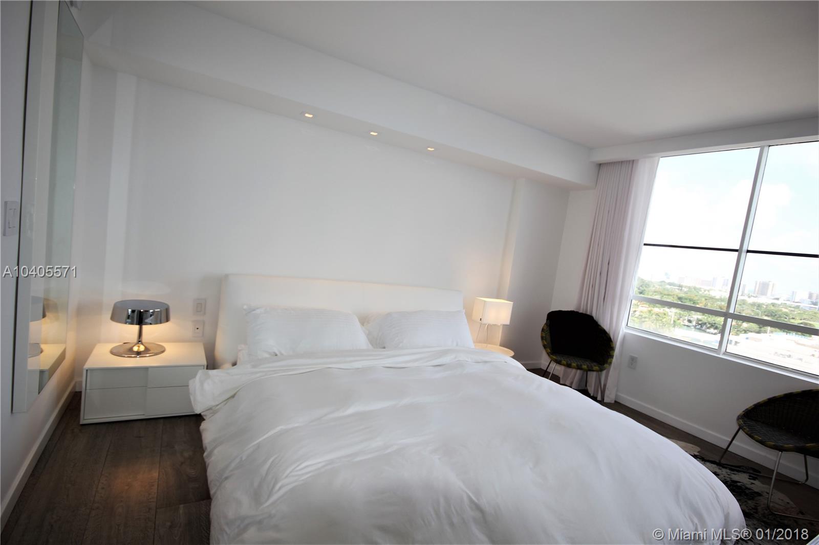 Recently remodeled to high-end quality perfection in impeccable condition with an awesome South Beach view. Open, spacious & bright living area w/full glass wall to glass balcony, recessed LED lighting, wood fls, exposed contemporary kitchen w/large Quartz island, Italian fixtures, high gloss custom cabinetry w/concealed Thermodor refrig & Bosch dishwasher. Over-the-top Master suite featuring a lavish bath w/wall mounted toilet & bidet, Italian glass mosaic tiling, two solid cone pedestal sinks w/large beveled edged circular mirrors. The spacious bedroom area has recessed LED’s, double glass door to balcony, a large window, plus a built out all walnut walk-in closet. This bay front building in the fabulous & trendy Sunset Harbour neighborhood is an absolute Top Pick!