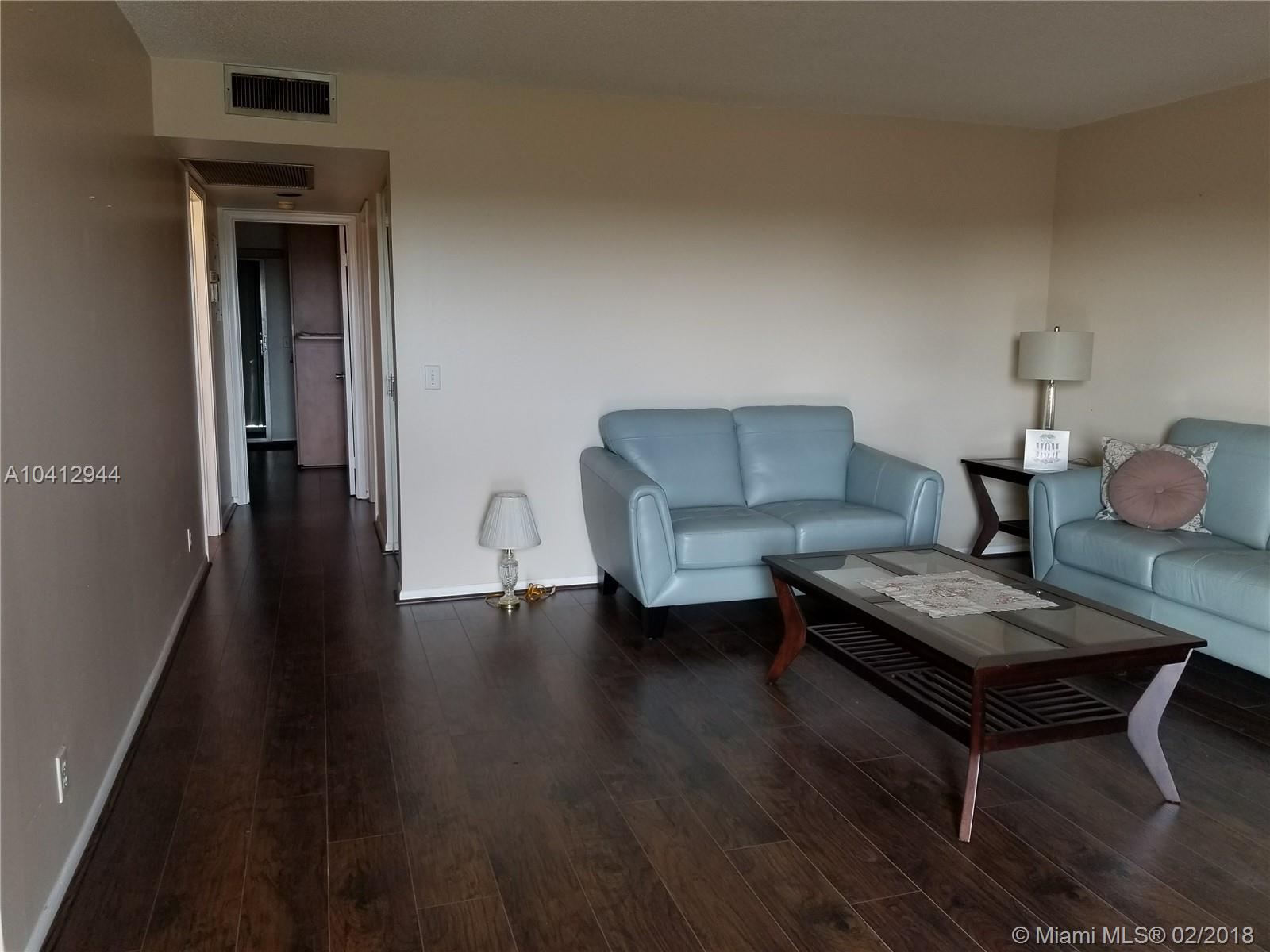 PRICE REDUCTION!!!! Ready for new owners!!! New wood veneer flooring throughout living room, hall, and both bedrooms. Master bedroom has walk-in closet, and 2nd bedroom had standard closet. Unit has additional storage in laundry room. Newly upgraded kitchen, tiled flooring in the living, kitchen and dining area. Additionally, all windows and balcony have accordion shutters installed for great protection. Laundry facility on the same floor. Parking space is directly across from elevator entry. Building is very close to entrance and has a beautiful view and easy access to entertainment facilities, and other activities. Vacant and easy to show.