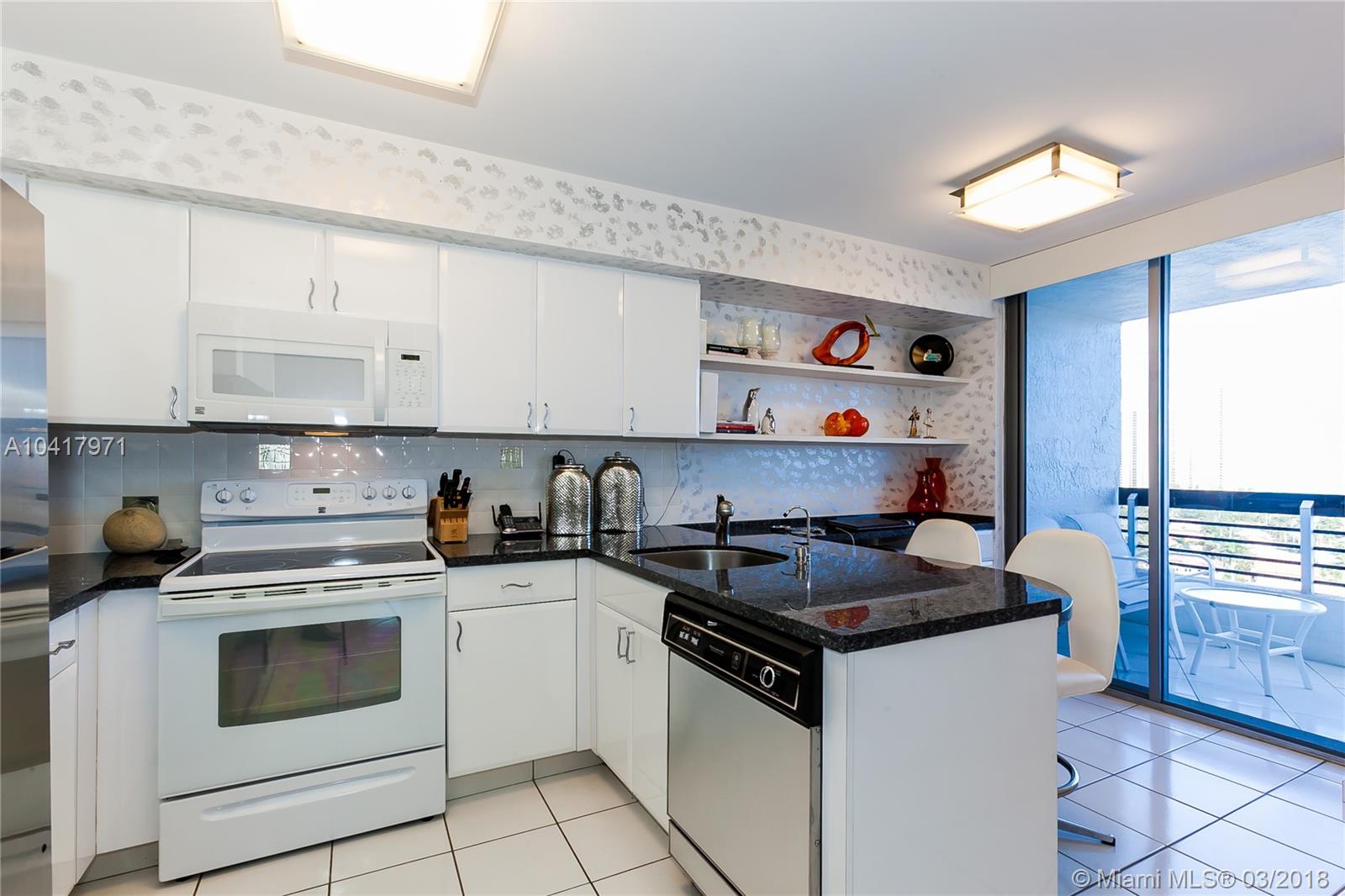 Recently remodeled condo with amazing views of the intracoastal and the ocean. Bathroom and kitchen remodeled with granite countertops. No popcorn ceiling. Freshly painted. New rollup shades throughout. Balcony redone and painted. Led lighting. Storm shutters. Ceramic floors. California closets. Spacious, open, modern, and bright unit. Plenty of light with east exposure. Amenities include 8 Tennis courts, pool & spa, grocery store, valet, fitness center, concierge, walking path along canal, shuttle stop. Minutes from the Aventura Mall and the beach. Walking distance to house of worship.