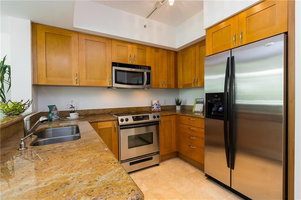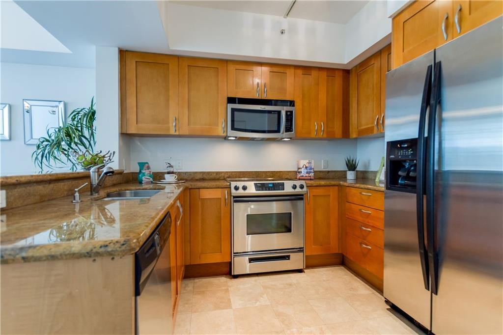 Impeccable split floor condo ideally located-walking distance to beach, dining & shopping. Features wood laminate floors throughout & fresh paint. Open kitchen w/granite counters & snack bar, stainless steel appliances & wood cabinets. Large bathrooms w/granite & marble. Custom made closets. Master w/sitting area, walk-in closet, double sinks. Full size washer/dryer. Easy access to assigned garage plus valet parking. Fees include cable, internet, maintenance agreement. Superb resort style amenities! Run!
