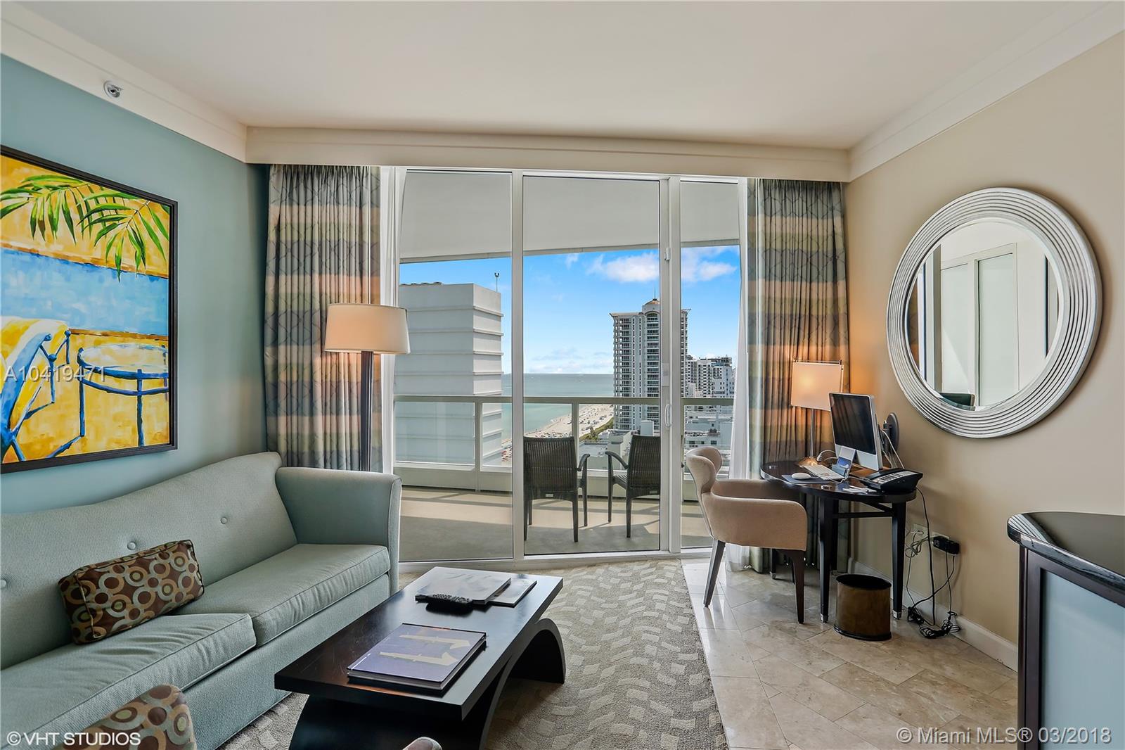 Beautiful Jr Suite w/ocean & pool views at The Fontainebleau III. Enjoy full service, vacation-style living in a furnished turnkey unit with king bed, sleeper sofa & more. Enroll in hotel rental program & receive income while away! The Fontainebleau Resort offers luxury amenities on 22 oceanfront acres including award-winning restaurants, LIV night club, Lapis spa & state-of-the-art fitness center. Maintenance includes: AC, local calls, electricity, valet + daily free breakfast in the owners lounge