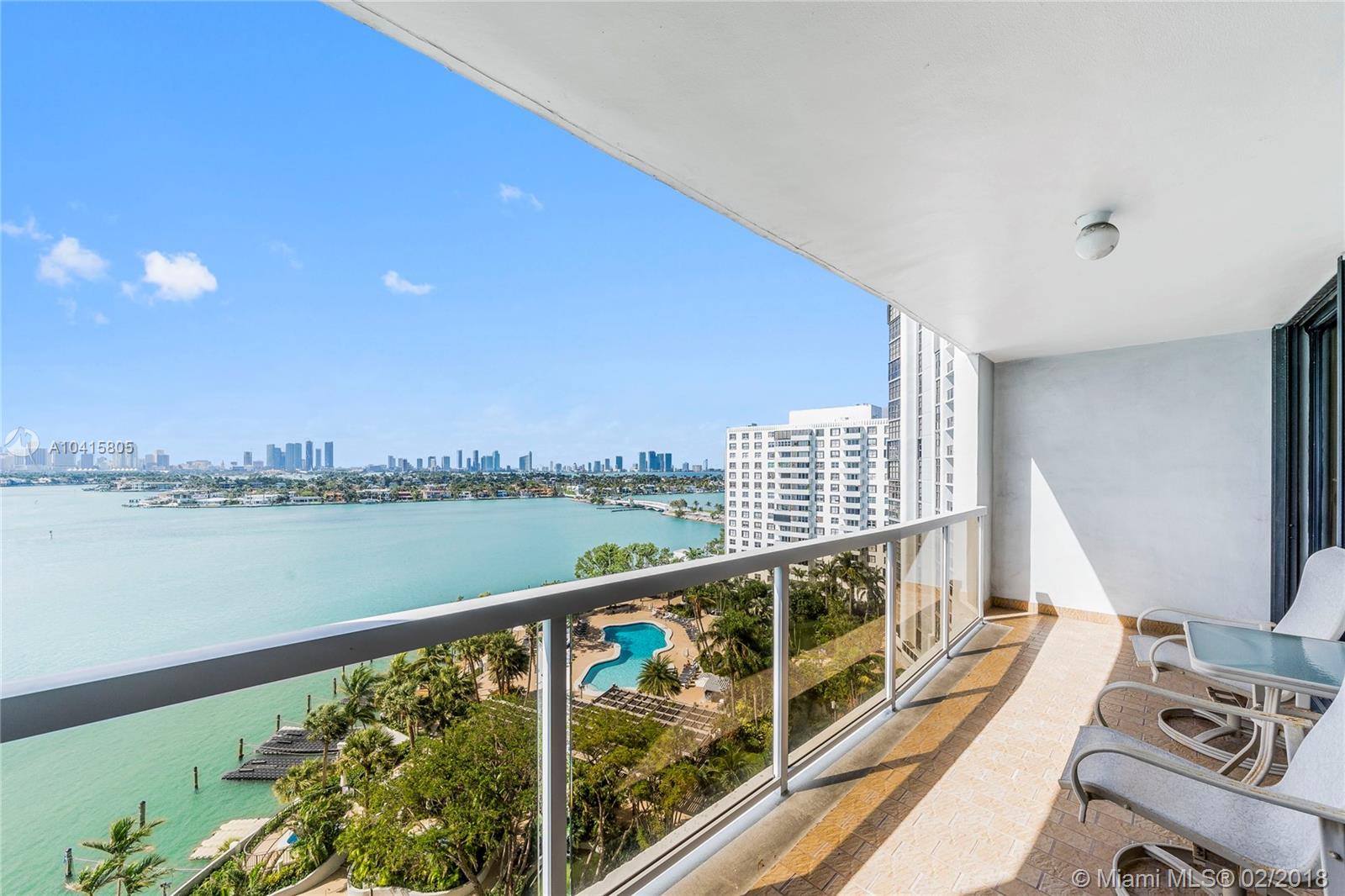 Magnificent views of Biscayne Bay, Star Island and South Beach. Nine Island Avenue Condo located at the prestigious Belle Isle in the Venetian Islands. Unobstructed water views from this 2 bedroom and 2 full baths, in the "06" line, spacious open floor plan, storage, full sized washer/dryer, master suite, bath/bidet, 1 parking space + 2nd space for rent. Great amenities: Cabana, Heated pool, jacuzzis, restaurant, tennis courts, boat docks overlooking the bay and Miami skyline, valet, gym, BBQ area. Walking distance to shops, restaurants,Lincoln Road, South Beach, Fresh market. across from the Standard Hotel...Assessment paid by Seller.