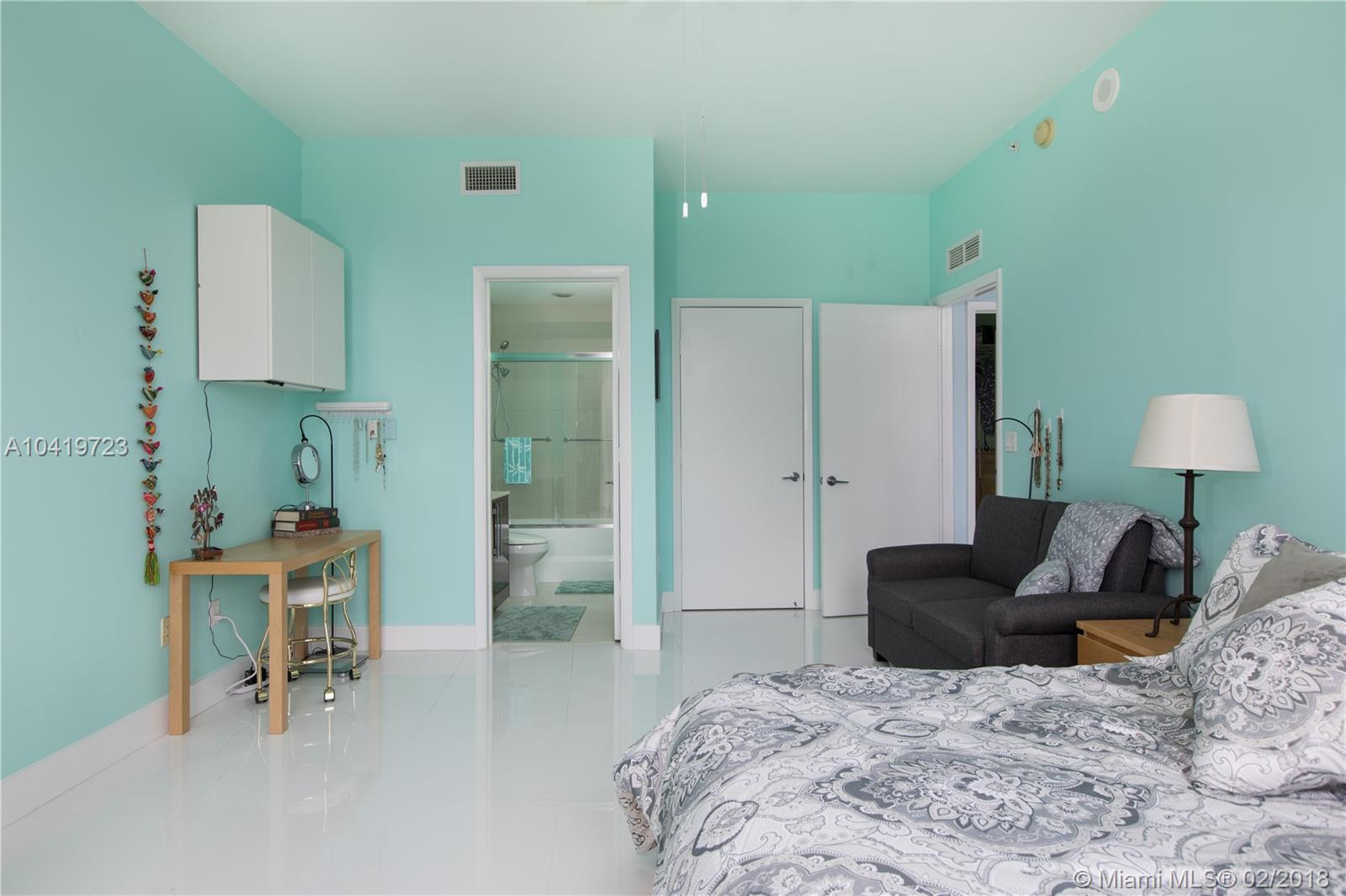OWNER FINANCING/ LEASE BACK AVAILABLE. Luxury high-rise with spectacular water views. Large magnificent 2 bedrooms plus den(or 3rd bedroom), 2 ½ bath, through and through condo, sunrise and sunset views. Private elevator and foyer, spacious eight-foot deep balcony, 10 ft. ceilings. Direct views of Biscayne Bay and Miami Beach. Impeccable condition, move in ready. High-end stainless appliances. Easy to show, exceptional quality. Distinctive resort-like living, central location minutes to Midtown, Wynwood, Design District, Adrienne Arsht, and Metro. Resort like amenities include 2 pools, Pilates room, group fitness classes, child playrooms, full spa, steam rooms, billiards, club room, etc. Additional parking space, completely furnished and large storage unit also available. MBR FAN EXCLUDED