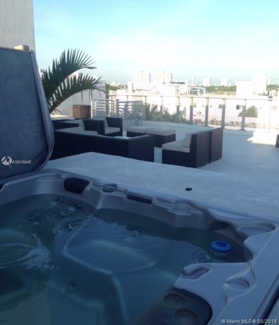 Immaculate corner Penthouse with completely private spacious rooftop terrace and private hot tub perfect for entertaining. Interior features 2 bedrooms and 2 baths, outstanding finishes, impeccably designed. One of a kind condo. Amenities include swimming pool, gym, free valet parking for you and your guests and Beach service with chairs & umbrellas. Building is located in the desired SoBe Arts District and Collins Park area. Short/quick walk to the beach, restaurantes, shops, cafes and many entertainment. Owner motivated! SF per attached floor plan. Being sold As-is with right of inspection.