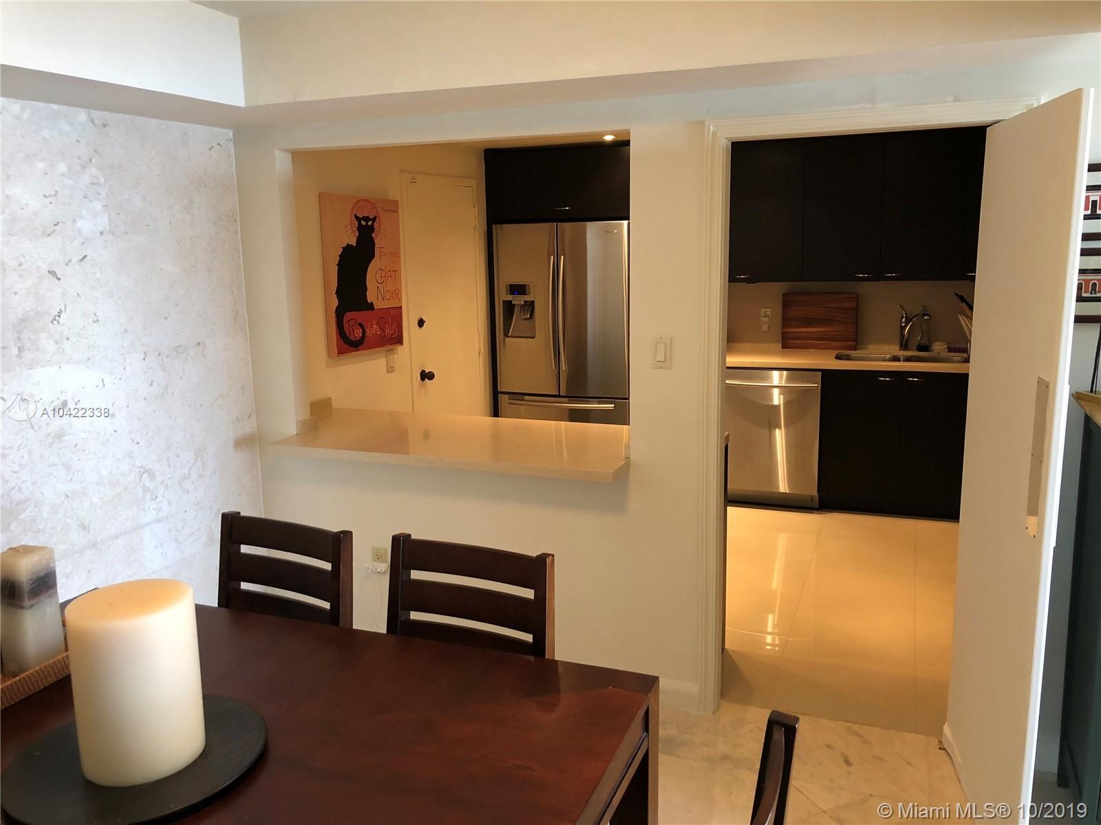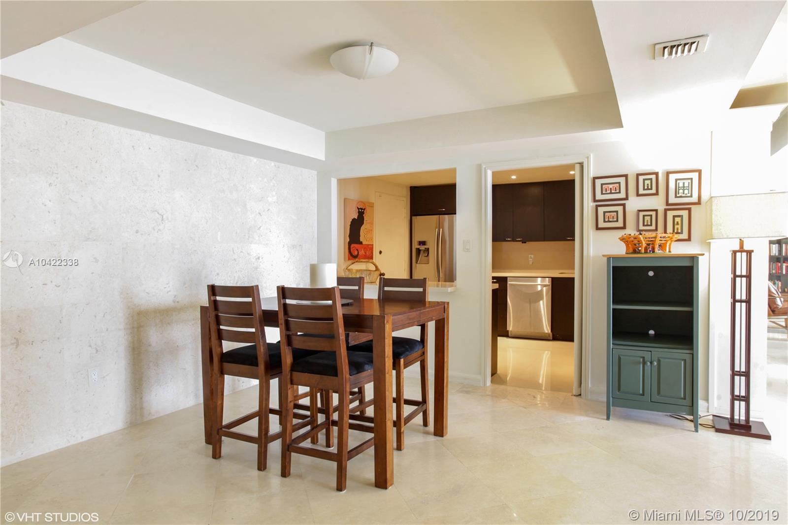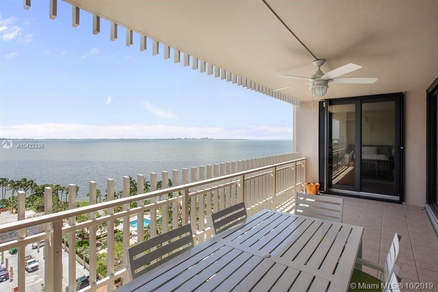 Largest 2 bedroom, 2 bathroom with East views of the Open Bay and Key Biscayne. Beautifully updated with marble floors in main living areas and updated kitchen with stainless steal appliances. The kitchen is semi-open with a pass-through opening facing the dining room. Other features include impact sliding doors and windows, spacious bedrooms, updated bathrooms and 3 closets including a large walk-in closet in the master bedroom. Live in paradise on a secure guard gated 20 acre island with full services, lots of amenities and a marina. Perfectly located in Coconut Grove and close to downtown Miami, Brickell and Miami Intl. Airport.