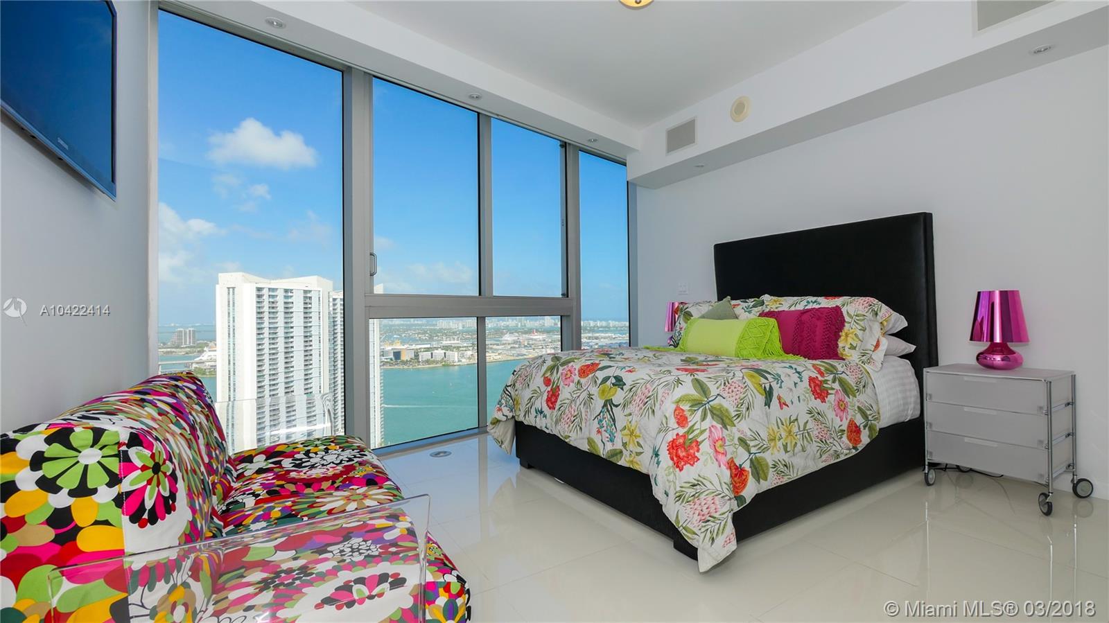 Stunning turn-key 3 bedroom 2.5 bath unit with a perfect blend between class and technology. With 250k invested in furniture and remodeling that transformed this unit into a smart home. Equipped with a smart thermostat with a A.I system which automatic adapts the temperature to your preference. Multi-room sound system that allows every room of the home to have a different environment. Stunning terrace which will provide you with an exquisite unobstructed views of the famous Miami Bay. Includes top of the line line kitchen with all of the best appliances and automatic blackouts on every room. This is a very unique unit at the Icon with every detail meticulously thought both for aesthetic and functional reasons. Once you visit this masterpiece, you will understand the extent of the upgrades.