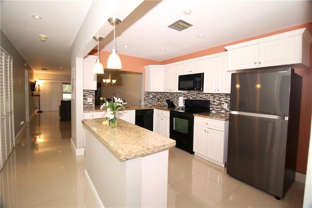 Beautiful remodeled 2/2 villa in Weston. Gourmet kitchen with granite countertops. Upgraded bathrooms & gorgeous porcelain floors. This one story unit is bright & light with no popcorn ceilings. Spacious bedrooms & lots of storage. Newer washer & dryer. Newly installed accordion shutters, water heater & refrigerator. Covered screened patio with tile floors overlooking garden area. 2 assigned parking spaces. Maintenance includes insurance, roof, outside paint, lawn, cable, trash & community pool. Great schools!