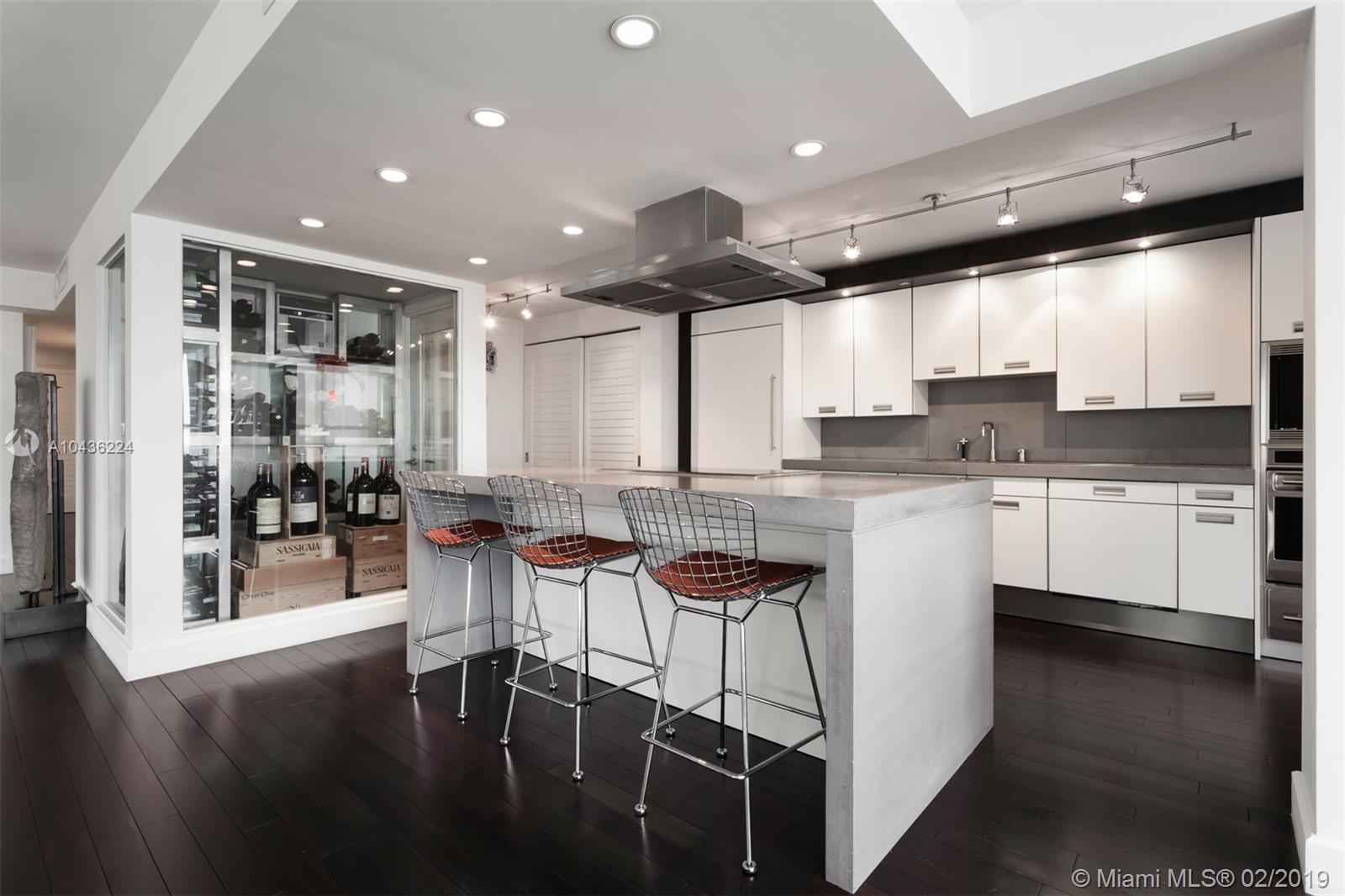 The stunning 3-bedroom, 2-bathroom corner unit in Grove Isle showcases endless views of Biscayne Bay and was completely renovated in 2006. Upon entry, one is greeted by a spacious layout and magnificent Brazilian cherry wood floors. A remarkable SieMatic kitchen with Miele, Wolf and Sub- Zero appliances and an extraordinary walk-in, custom wine cooler lead to a large living room, breakfast nook and formal dining room. Two oversized balconies feature brand new limestone flooring and spectacular water and skyline views. A brand new wine cooling unit and AC system exemplify the no-expense-spared upgrades and finishes. The third bedroom was converted into a large family room with custom built-ins. The condominium provides several amenities such as a guard-gated entry, tennis courts and pool.