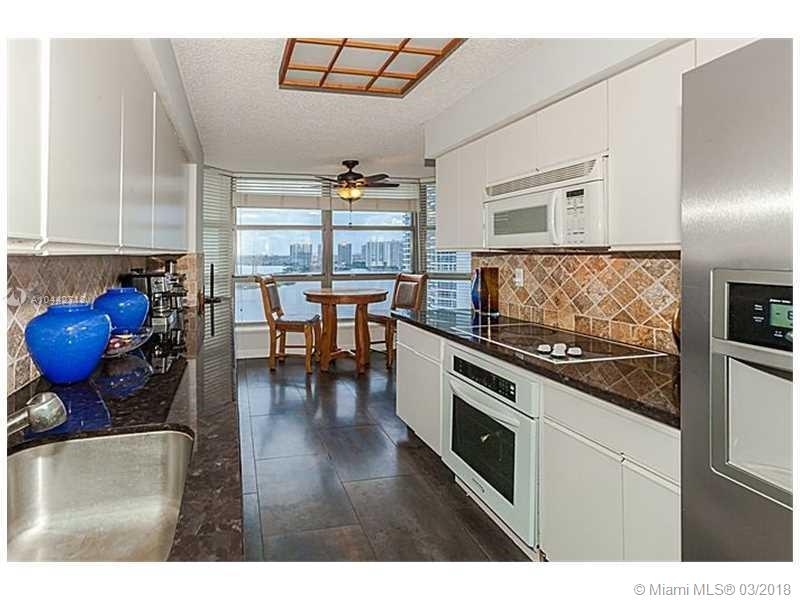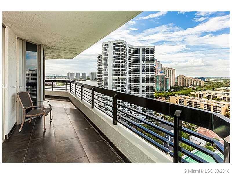 Enjoy the most beautiful views of the ocean, Sunny Isles, Golden Beach, and the exclusive Turnberry golf course. Very spacious corner unit with a very large wrap around balcony. Panoramic views of intracoastal. Very nice tile floors, modern kitchen, good size closets, laundry room w/ washer & dryer. Full amenities building includes fitness center, game room, tennis courts, heated pool. Walking distance to house of worship and minutes from the beach, golfcourse and Aventura Mall. 24h security & concierge, convenience store.