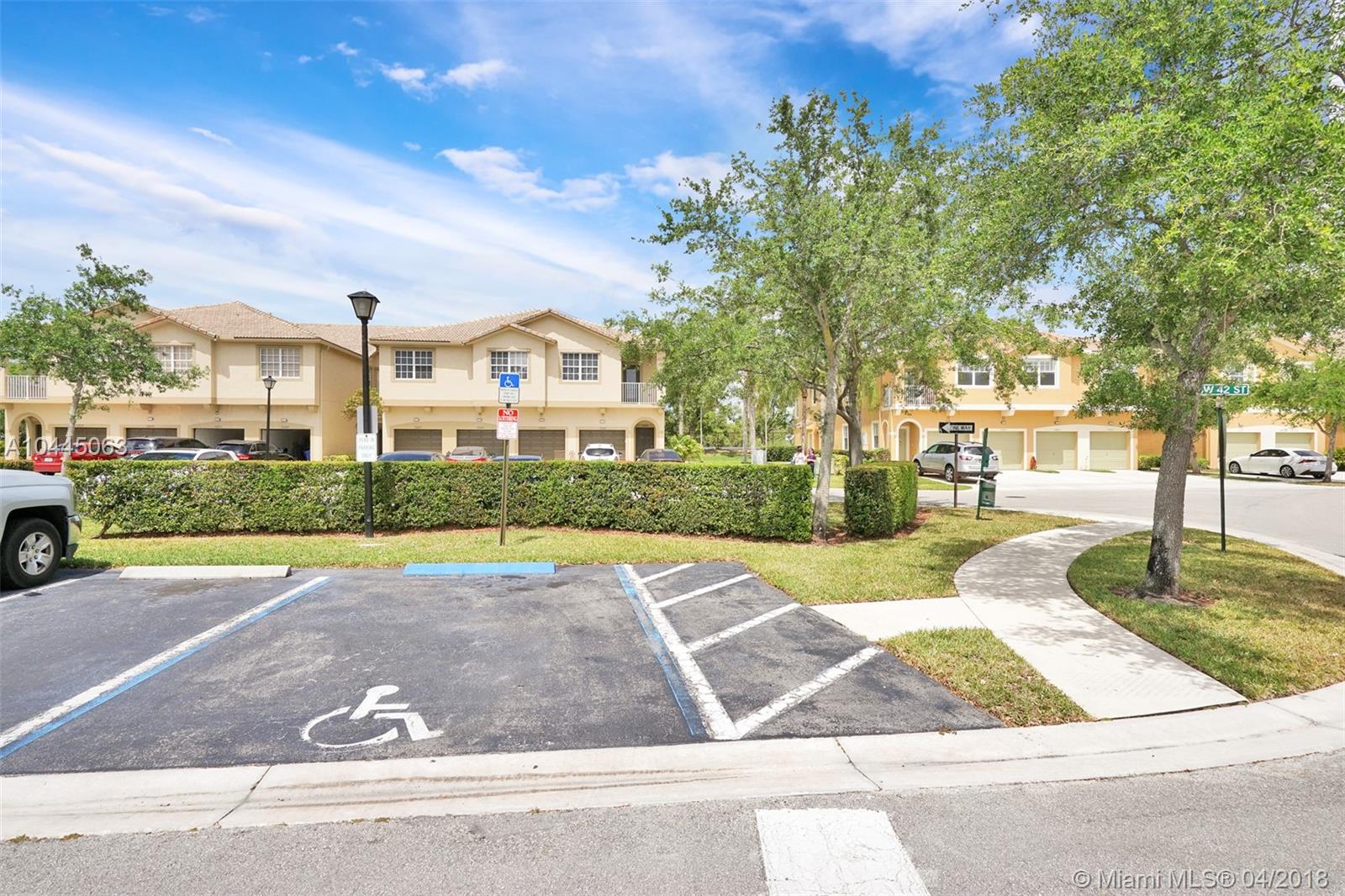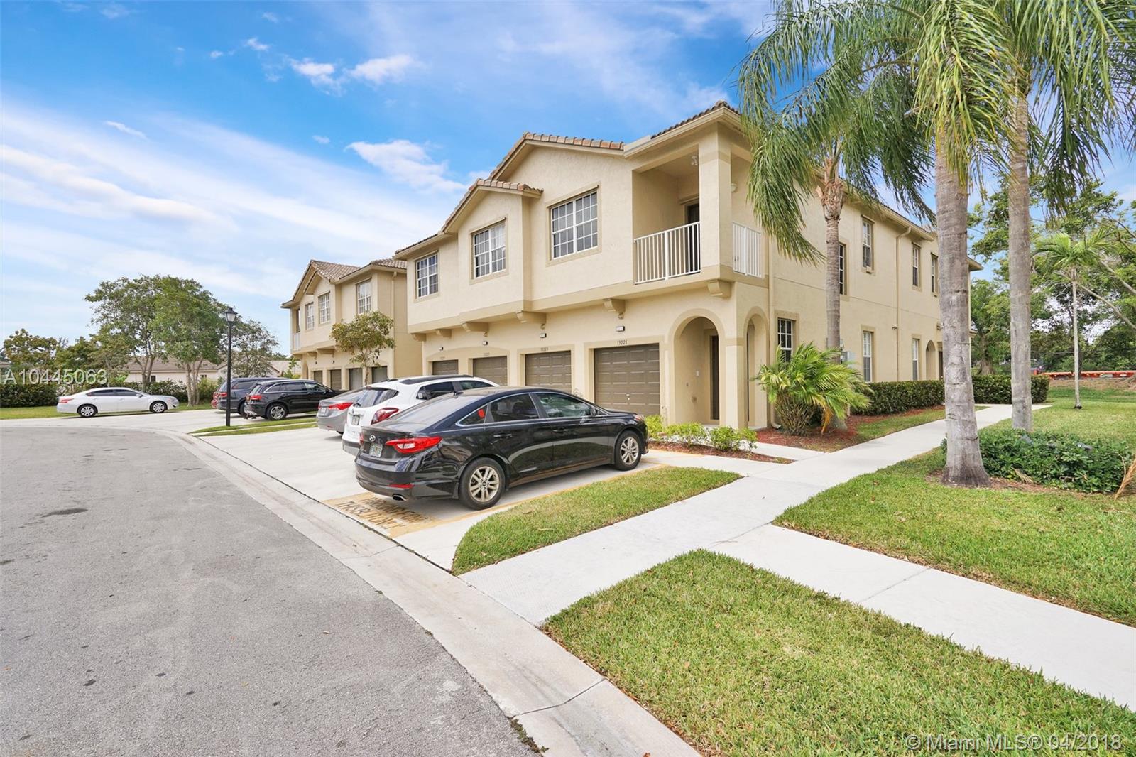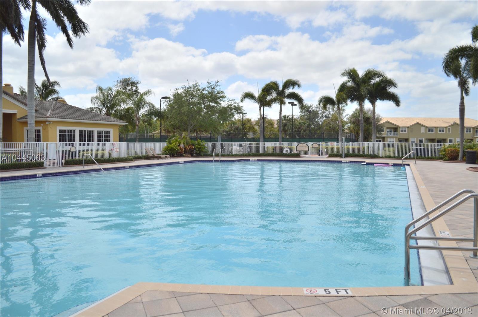 Almost New two story corner townhome style condo with garage on 1st floor in the sought after Silver Falls community close to Miami/Broward county line! This charming 2 bedroom 2 bath home is extremely well maintained! Appliances are in like New condition! Upgraded laminate flooring on stairs, light tile floor in main living area and super clean carpet in bedrooms. Front loading full size washer & dryer in unit. Huge walk-in master bedroom closet, Romeo & Juliet type balcony over looks front entryway so you can greet your guests! Well maintained association with community clubhouse that features, pool, gym, rental party room, basketball & tennis courts, tot lot that is included in the association dues along with front gate and roving security, upgraded cable, water, trash, exterior & roof!